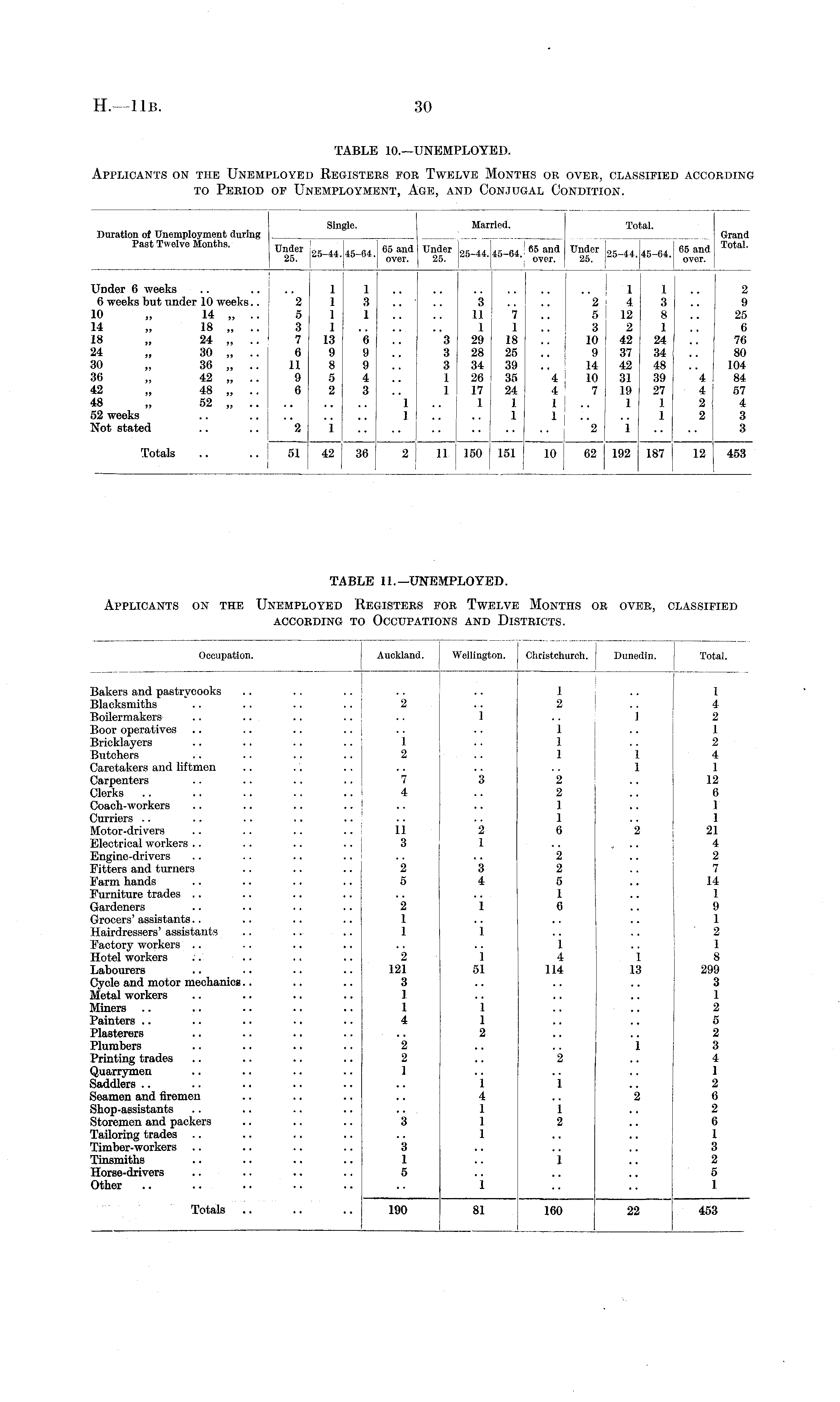TABLE 11.—UNEMPLOYED. Applicants on the Unemployed Registers for Twelve Months or over, classified according to Occupation and Districts.