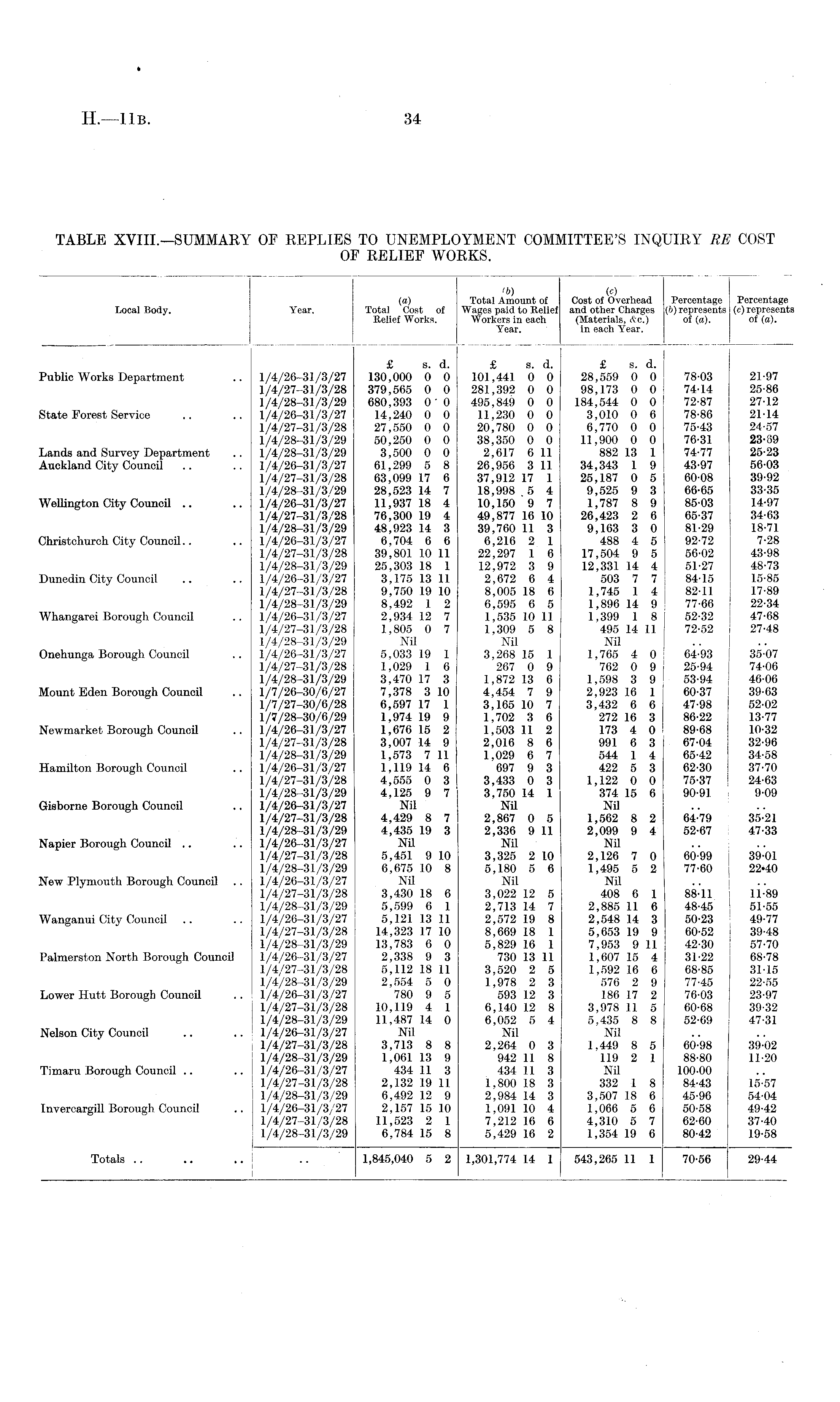lb) <c) (a) Total Amount of Coat of Overhead Percentage Percentage Local Body. Year. Total Cost of Wages paid to Relief and other Charges (&) represents (c) represents Relief Works. Workers in each (Materials, &c.) of (a). of (a). Year. in each Year. £ s. d. £ s. d. £ s. d. Public Works Department .. 1/4/26-31/3/27 130.000 0 0 101,441 0 0 28,559 0 0 78-03 21-97 1/4/27-31/3/28 379,565 0 0 281,392 0 0 98,173 0 0 74-14 25-86 1/4/28-31/3/29 680,393 0 0 495,849 0 0 184,544 0 0 72-87 27-12 State Forest Service .. .. 1/4/26-31/3/27 14,240 0 0 11,230 0 0 3,010 0 6 78-86 21-14 1/4/27-31/3/28 27,550 0 0 20,780 0 0 6,770 0 0 75-43 24-57 1/4/28-31/3/29 50,250 0 0 38,350 0 0 11,900 0 0 76-31 23-89 Lands and Survey Department .. 1/4/28-31/3/29 3,500 0 0 2,617 6 11 882 13 1 74-77 25-23 Auckland City Council .. .. 1/4/26-31/3/27 61,299 5 8 26.956 3 11 34,343 1 9 43-97 56-03 1/4/27-31/3/28 63,099 17 6 37,912 17 1 25,187 0 5 60-08 39-92 1/4/28-31/3/29 28,523 14 7 18,998 5 4 9,525 9 3 66-65 33-35 Wellington City Council .. .. 1/4/26-31/3/27 11,937 18 4 10,150 9 7 1,787 8 9 85-03 14-97 1/4/27-31/3/28 76,300 19 4 49,877 16 10 26,423 2 6 65-37 34-63 1/4/28-31/3/29 48,923 14 3 39,760 11 3 9,163 3 0 81-29 18-71 Christchurch City Council.. .. 1/4/26-31/3/27 6,704 6 6 6,216 2 1 488 4 5 92-72 7-28 1/4/27-31/3/28 39,801 10 11 22,297 1 6 17,504 9 5 56-02 43-98 1/4/28-31/3/29 25,303 18 1 12,972 3 9 12,331 14 4 51-27 48-73 Dunedin City Council .. .. 1/4/26-31/3/27 3,175 13 11 2,672 6 4 503 7 7 84-15 15-85 1/4/27-31/3/28 9,750 19 10 8,005 18 6 1,745 1 4 82-11 17-89 1/4/28-31/3/29 8.492 1 2 6,595 6 5 1,896 14 9 77-66 22-34 Whangarei Borough Council .. 1/4/26-31/3/27 2,934 12 7 1,535 10 11 1,399 1 8 52-32 47-68 1/4/27-31/3/28 1,805 0 7 1,309 5 8 495 14 11 72-52 27-48 1/4/28-31/3/29 Ml Nil Nil Onehunga Borough Council .. 1/4/26-31/3/27 5,033 19 1 3,268 15 1 1,765 4 0 64-93 35-07 1/4/27-31/3/28 1,029 1 6 267 0 9 762 0 9 25-94 74-06 1/4/28-31/3/29 3,470 17 3 1,872 13 6 1,598 3 9 53-94 46-06 Mount Eden Borough Council .. 1/7/26-30/6/27 7,378 3 10 4,454 7 9 2,923 16 1 60-37 i 39-63 1/7/27-30/6/28 6,597 17 1 3,165 10 7 3,432 6 6 47-98 ! 52-02 1/7/28-30/6/29 1,974 19 9 1,702 3 6 272 16 3 86-22 13-77 Newmarket Borough Council .. 1/4/26-31/3/27 1,676 15 2 1,503 11 2 173 4 0 89-68 10-32 1/4/27-31/3/28 3,007 14 9 2,016 8 6 991 6 3 67-04 i 32-96 1/4/28-31/3/29 1,573 7 11 1,029 6 7 544 1 4 65-42 j 34-58 Hamilton Borough Council .. 1/4/26-31/3/27 1,119 14 6 697 9 3 422 5 3 62-30 1 37-70 1/4/27-31/3/28 4,555 0 3 3,433 0 3 1,122 0 0 75-37 ' 24-63 1/4/28-31/3/29 4,125 9 7 3,750 14 1 374 15 6 90-91 9-09 Gisborne Borough Council .. 1/4/26-31/3/27 Nil Nil Nil 1/4/27-31/3/28 4,429 8 7 2,867 0 5 1,562 8 2 64-79 35-21 1/4/28-31/3/29 4,435 19 3 2,336 9 11 2,099 9 4 52-67 47-33 Napier Borough Council .. .. 1/4/26-31/3/27 Nil Nil Nil 1/4/27-31/3/28 5,451 9 10 3,325 2 10 2,126 7 0 60-99 j 39-01 1/4/28-31/3/29 6,675 10 8 5,180 5 6 1,495 5 2 77-60 1 22*40 New Plymouth Borough Council .. 1/4/26-31/3/27 Nil Nil Nil .. j 1/4/27-31/3/28 3,430 18 6 3,022 12 5 408 6 1 88-11 11-89 1/4/28-31/3/29 5,599 6 1 2,713 14 7 2,885 11 6 48-45 51-55 Wanganui City Council .. .. 1/4/26-31/3/27 5,121 13 11 2,572 19 8 2,548 14 3 50-23 49-77 1/4/27-31/3/28 14,323 17 10 8,669 18 1 5,653 19 9 60-52 39-48 1/4/28-31/3/29 13,783 6 0 5,829 16 1 7,953 9 11 42-30 57-70 Palmerston North Borough Council 1/4/26-31/3/27 2,338 9 3 730 13 11 1,607 15 4 31-22 68-78 1/4/27-31/3/28 5,112 18 11 3,520 2 5 1,592 16 6 68-85 31-15 1/4/28-31/3/29 2,554 5 0 1,978 2 3 576 2 9 77-45 22-55 Lower Hutt Borough Council .. 1/4/26-31/3/27 780 9 5 593 12 3 186 17 2 76-03 23-97 1/4/27-31/3/28 10,119 4 1 6,140 12 8 3,978 11 5 60-68 39-32 1/4/28-31/3/29 11,487 14 0 6,052 5 4 5,435 8 8 52-69 47-31 Nelson City Council .. .. 1/4/26-31/3/27 Nil Nil Nil 1/4/27-31/3/28 3,713 8 8 2,264 0 3 1,449 8 5 60-98 39-02 1/4/28-31/3/29 1,061 13 9 942 11 8 119 2 1 88-80 11-20 Timaru Borough Council .. .. 1/4/26-31/3/27 434 11 3 434 11 3 Nil 100-00 1/4/27-31/3/28 2,132 19 11 1,800 18 3 332 1 8 84-43 15-57 1/4/28-31/3/29 6,492 12 9 2,984 14 3 3,507 18 6 45-96 54-04 Invercargill Borough Council .. 1/4/26-31/3/27 2,157 15 10 1,091 10 4 1,066 5 6 50-58 49-42 1/4/27-31/3/28 11,523 2 1 7,212 16 6 4,310 5 7 62-60 37-40 1/4/28-31/3/29 6,784 15 8 5,429 16 2 1,354 19 6 80-42 19-58 Totals .. .. .. .. 1,845,040 5 2 1,301,774 14 1 543,265 11 1 70-56 29-44 I