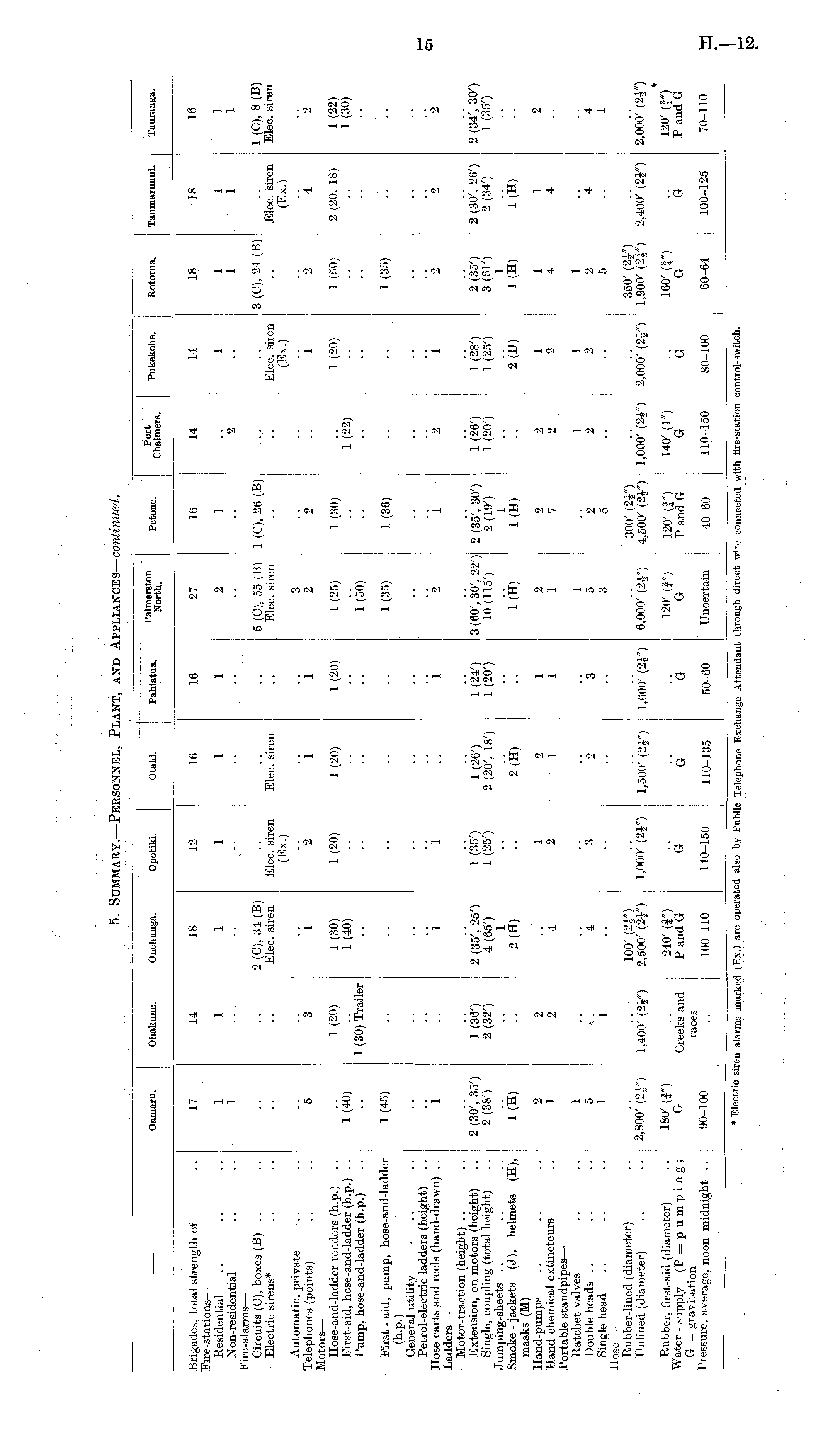 5. Summary.—Personnel, Plant, and Appliances—continued.