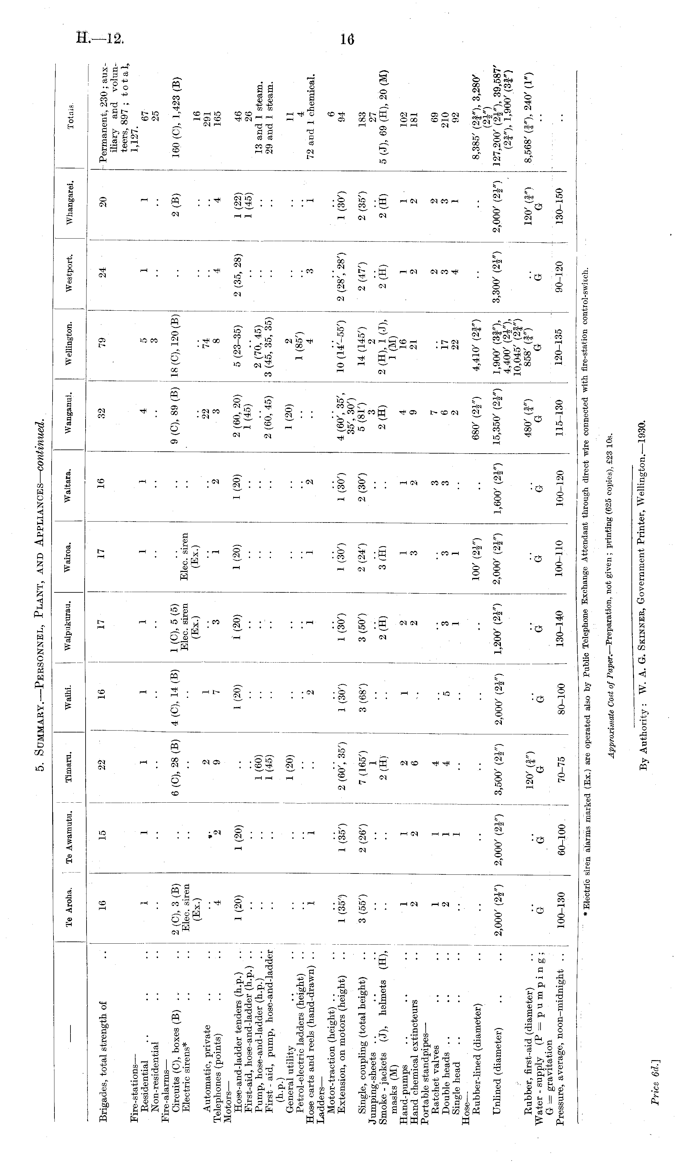 5. Summary.—Personnel, Plant, and Appliances—continued.