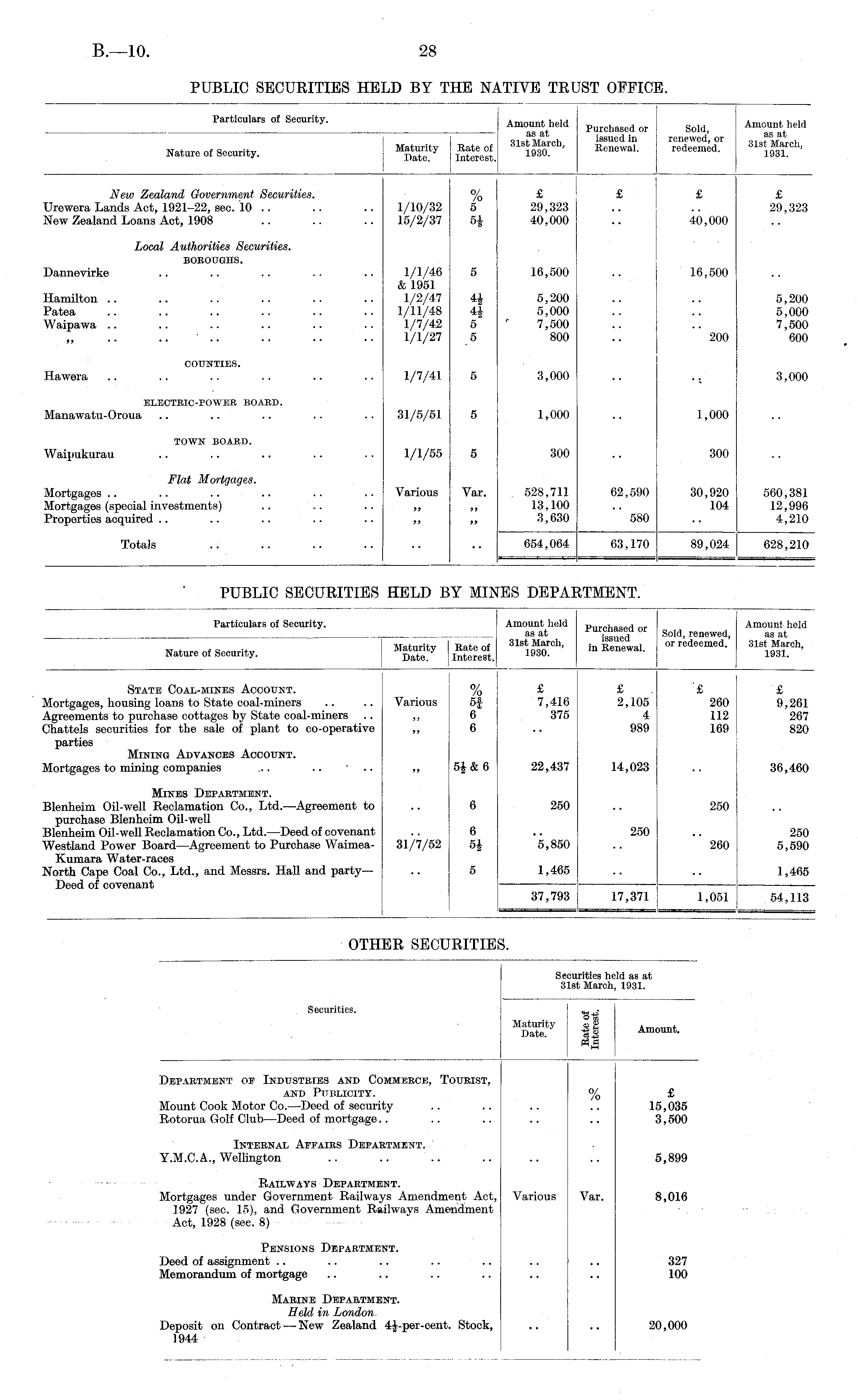 PUBLIC SECURITIES HELD BY MINES DEPARTMENT.