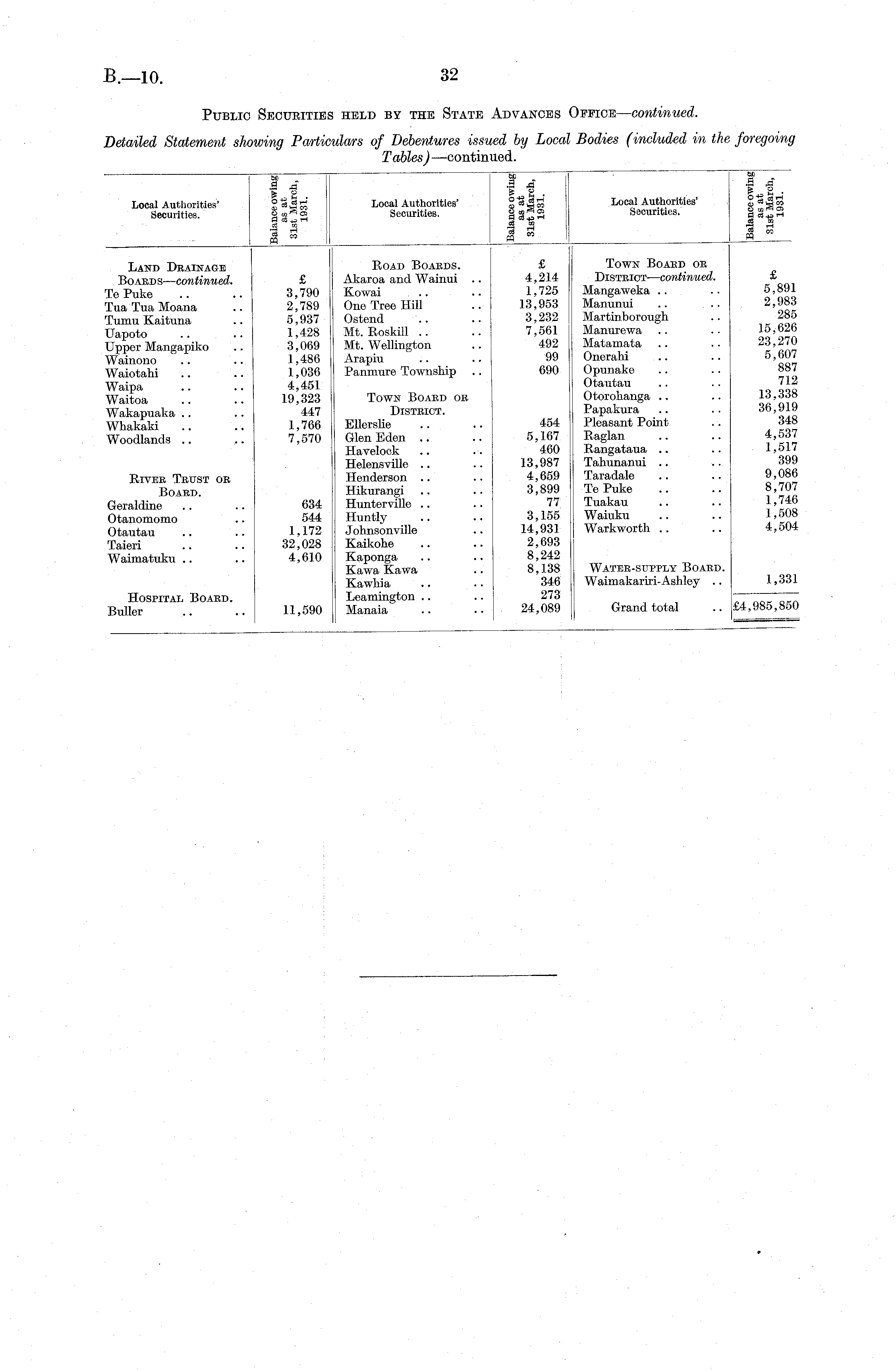 Public Securities held by the State Advances Office —continued. Detailed Statement showing Particulars of Debentures issued by Local Bodies (included in the foregoing Tables) —Continued.
