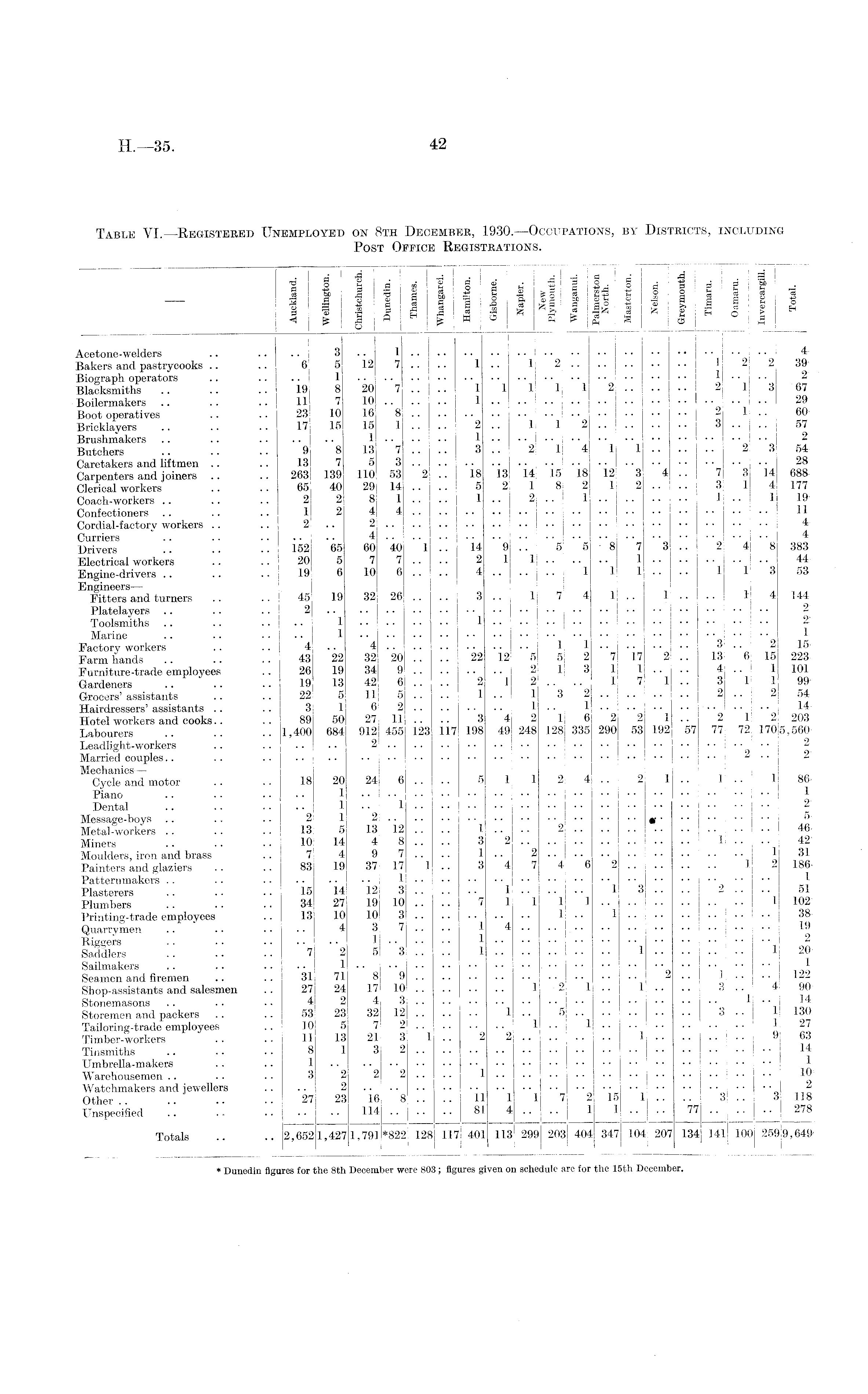 Table VI.— Registered Unemployed on 8th December, 1930.—Occupations, by Districts, including Post Office Registrations.