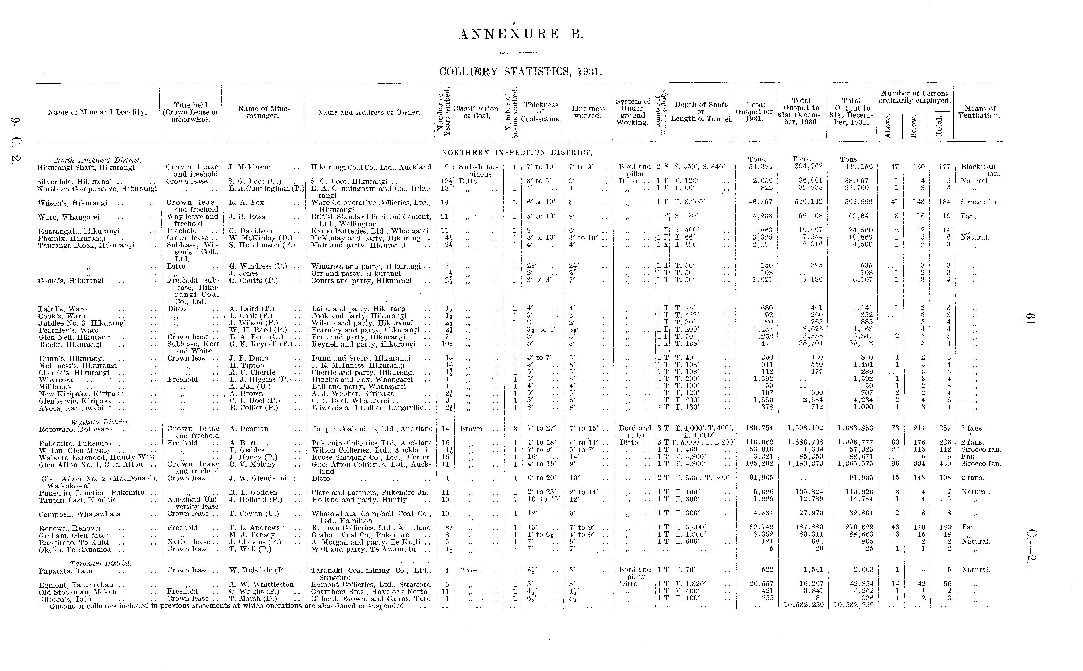COLLIERY STATISTICS, 1931.