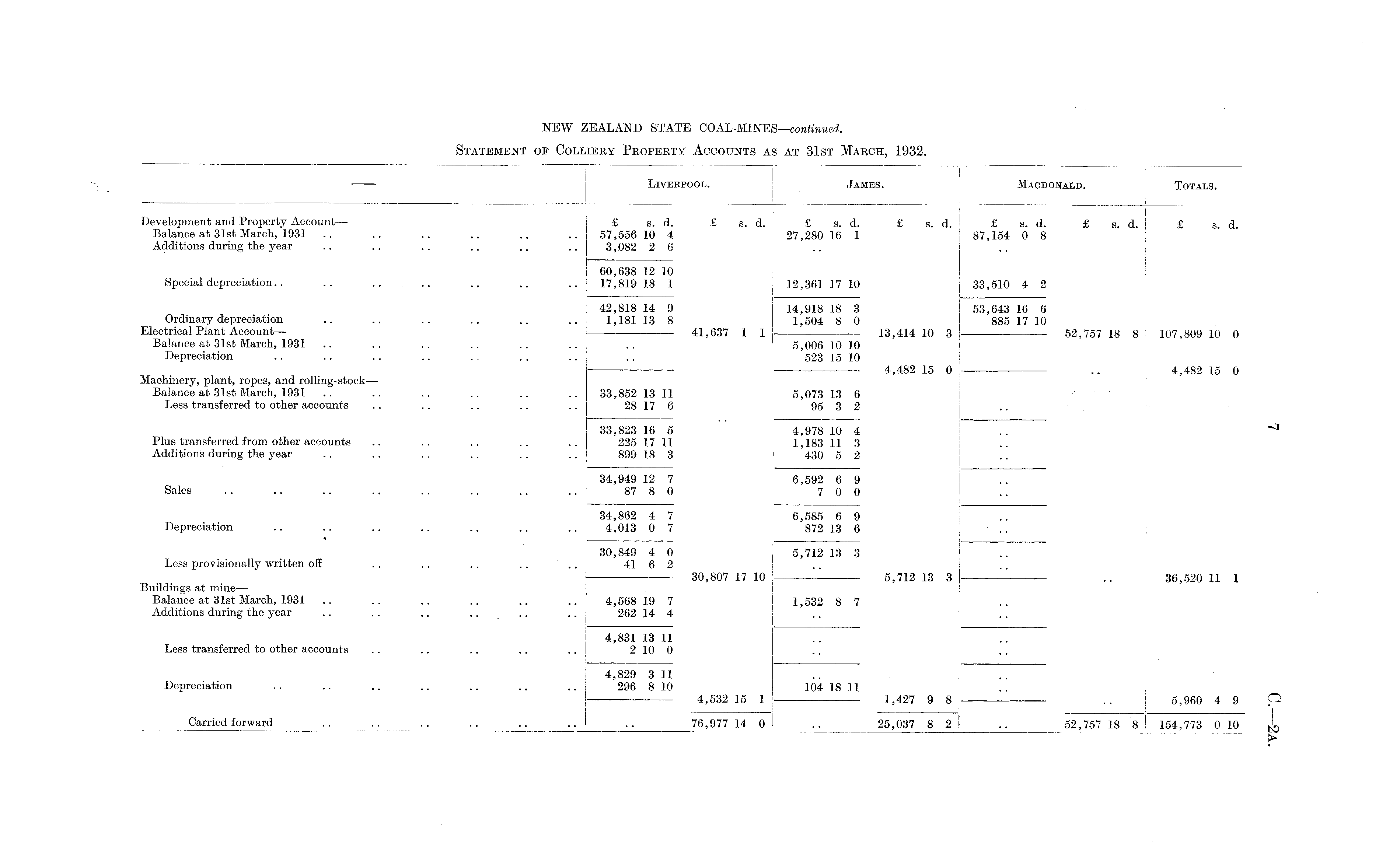 NEW ZEALAND STATE COAL-MINES—continued. Statement of Colliery Property Accounts as at 31st March, 1932.
