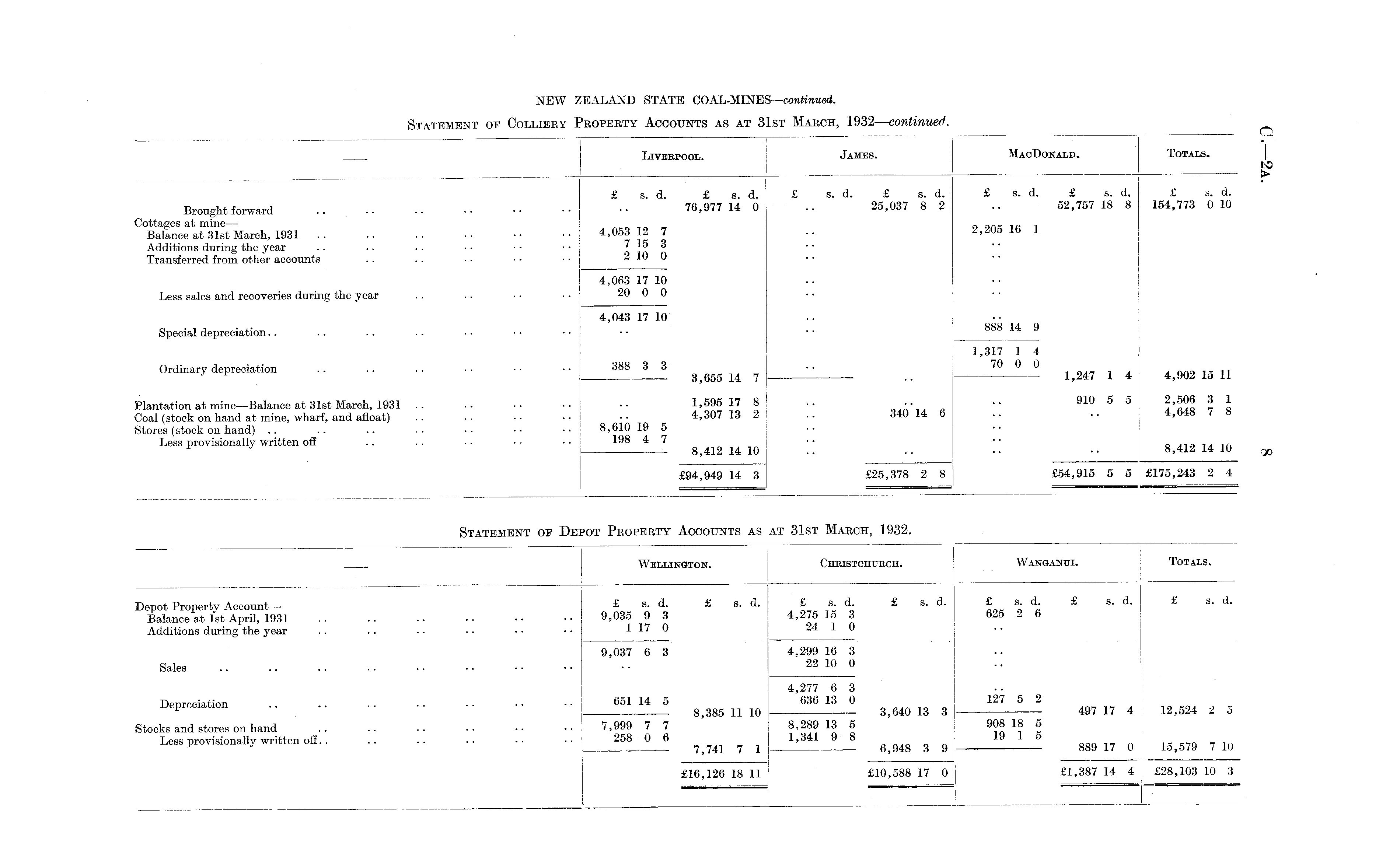 NEW ZEALAND STATE COAL-MINES— continued. Statement of Colliery Property Accounts as at 31st March, 1932 — continued.