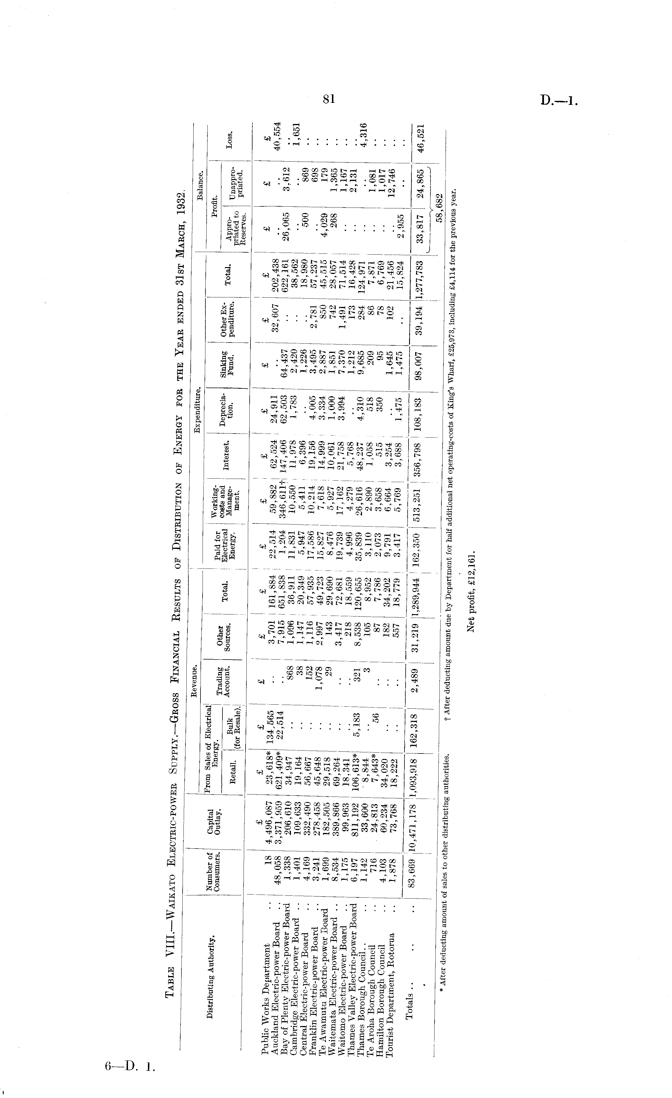 Table VIII.-Waikato Electric-power Supply.— Gross Financial Results of Distribution of Energy for the Year ended 31st March, 1932.