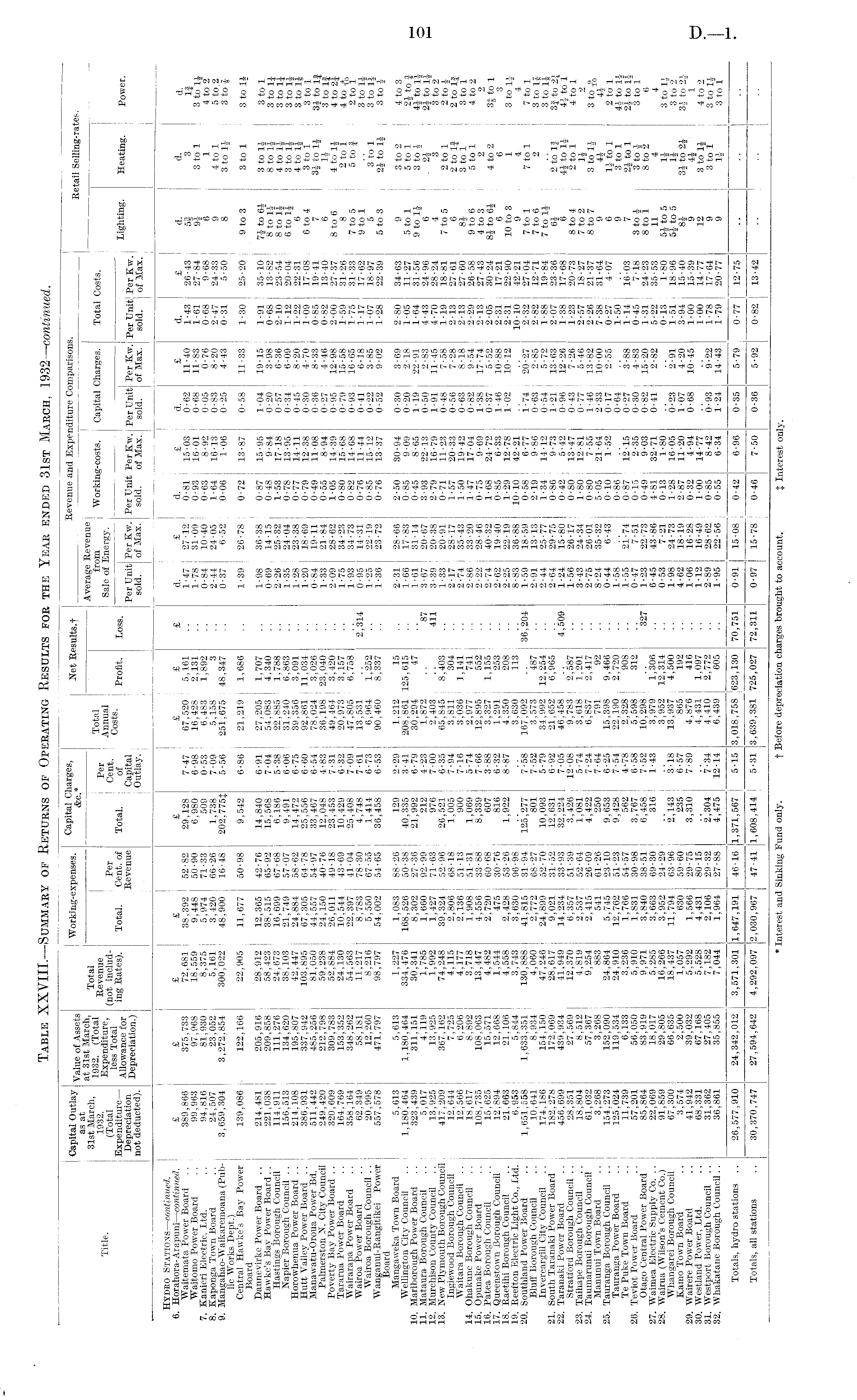 Table XXVIII.—Summary of Returns of Operating Results for the Year ended 31st March, 1932— continued.