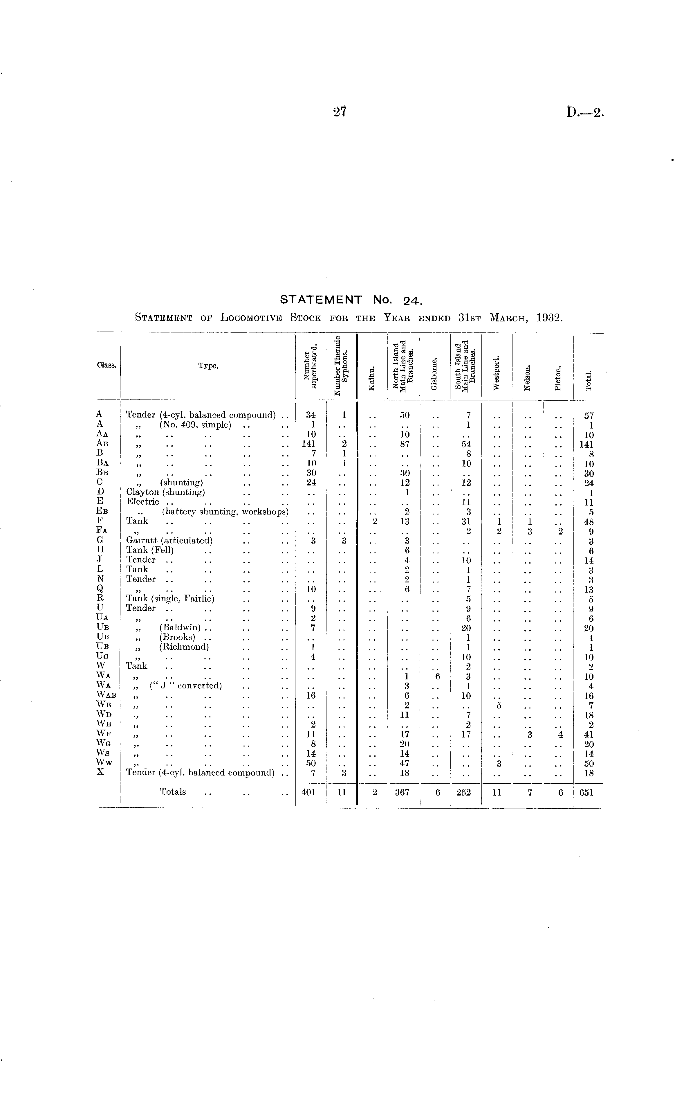 STATEMENT No. 24. Statement of Locomotive Stock for the Year ended 31st March, 1932.