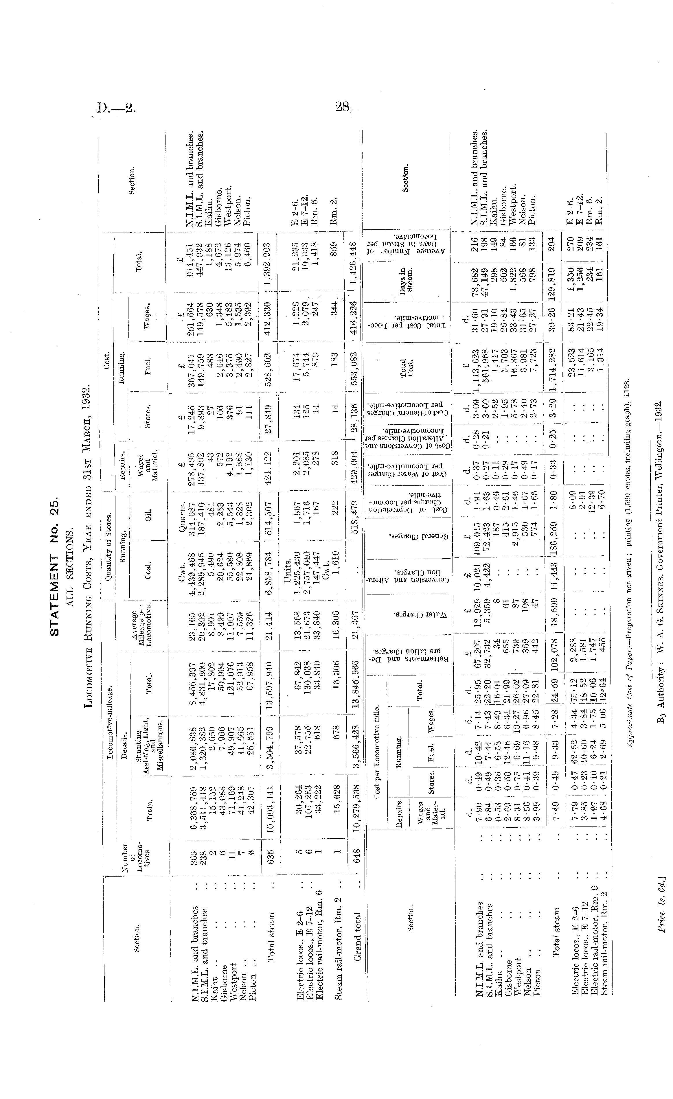STATEMENT No. 25. A LL SECTIONS. Locomotive Running Costs, Year ended 31st March, 1932.