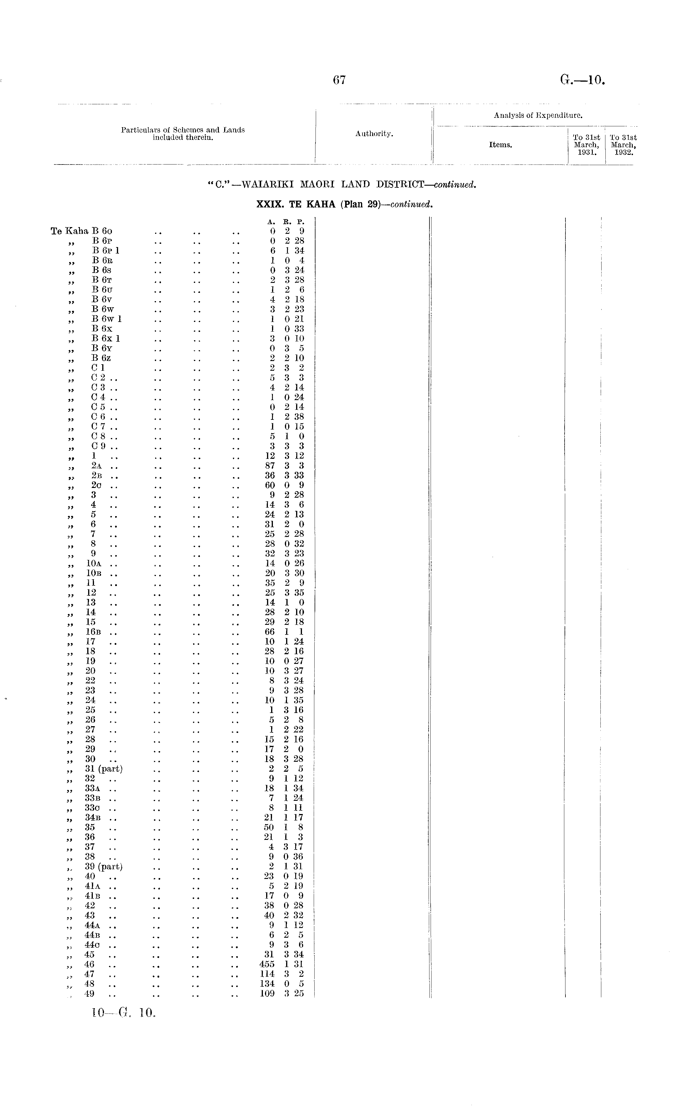 Analysis of Expenditure. Particulars of Schemes and Lands A .. . included therein. Authority. To 31st To 31st Items. March, March, 1931. 1932. ■ . " C." —WAIARIKI MAORI LAND DISTRICT—continued. XXIX. TE KAHA (Plan 29)—continued. A. R. P. Te Kaha B 60 .. .. .. 0 2 9 B 6P .. .. .. 0 2 28 B 6P 1 .. .. .. 6 1 34 B 6R .. .. .. 10 4 B 6s .. .. .. 0 3 24 „ B 6T .. .. .. 2 3 28 B 6u .. .. .. 12 6 B 6v .. .. .. 4 2 18 B 6w .. .. .. 3 2 23 B 6w 1 .. .. .. 1 0 21 ,, B 6x .. .. .. 1 0 33 B 6x 1 .. .. .. 3 0 10 „ B 6Y .. .. .. 0 3 5 „ B 6z .. .. .. 2 2 10 „ CI .. .. .. 232 „ 0 2 .. .. .. .. 533 „ 0 3.. .. .. .. 4 2 14 0 4.. .. .. .. 1 0 24 „ 0 5.. .. .. .. 0 2 14 0 6.. .. .. .. 1 2 38 „ 0 7 .. .. .. .. 1 0 15 „08.. .. .. ..510 09.. .. .. .. 333 1 .. .. .. .. 12 3 12 2A .. .. .. .. 87 3 3 2B .. .. .. .. 36 3 33 2o .. .. .. .. 60 0 9 „ 3 .. .. .. .. 9 2 28 „ 4 .. .. .. .. 14 3 6 5 .. .. .. 24 2 13 6 .. .. .. 31 2 0 7 .. .. .. 25 2 28 8 .. .. .. 28 0 32 9 .. .. .. 32 3 23 „ 10A .. .. .. .. 14 0 26 „ 10B .. .. .. .. 20 3 30 „ 11 .. .. .. .. 35 2 9 „ 12 .. .. .. .. 25 3 35 „ 13 .. .. .. .. 14 1 0 „ 14 .. .. .. .. 28 2 10 „ 15 .. .. .. .. 29 2 18 „ 16B .. .. .. .. 66 1 1 „ 17 .. .. .. .. 10 1 24 „ 18 .. .. .. .. 28 2 16 „ 19 .. ...... 10 0 27 „ 20 .. .. .. .. 10 3 27 „ 22 .. .. .. .. 8 3 24 „ 23 .. .. .. .. 9 3 28 „ 24 .. .. .. .. 10 1 35 „ 25 .. .. .. .. 1 3 16 „ 26 .. .. .. .. 5 2 8 „ 27 .. .. .. .. 1 2 22 „ 28 .. .. .. .. 15 2 16 „ 29 .. .. .. .. 17 2 0 „ 30 .. .. .. .. 18 3 28 „ 31 (part) .. .. .. 2 2 5 „ 32 .. .. .. .. 9 1 12 „ 33A .. .. .. .. 18 1 34 „ 33B .. .. .. .. 7 1 24 „ 33o .. .. .. .. 8 1 11 „ 34B .. .. .. .. 21 1 17 „ 35 .. .. .. .. 50 1 8 „ 36 .. .. .. .. 21 1 3 „ 37 .. .. .. .. 4 3 17 „ 38 .. .. .. .. 9 0 36 39 (part) .. .. .. 2 1 31 „ 40 .. .. .. .. 23 0 19 „ 41a .. .. .. .. 5 2 19 „ 41B .. .. .. .. 17 0 9 42 ,. .. .. .. 38 0 28 „ 43 .. .. .. .. 40 2 32 „ 44A .. .. .. .. 9 1 12 „ 44B .. .. .. .. 6 2 5 „ 44a .. .. .. .. 9 3 6 „ 45 .. .. .. .. 31 3 34 „ 46 .. .. .. .. 455 1 31 „ 47 .. .. .. .. 114 3 2 „ 48 .. .. .. .. 134 0 5 .49 .. .. .. .. 109 3 25