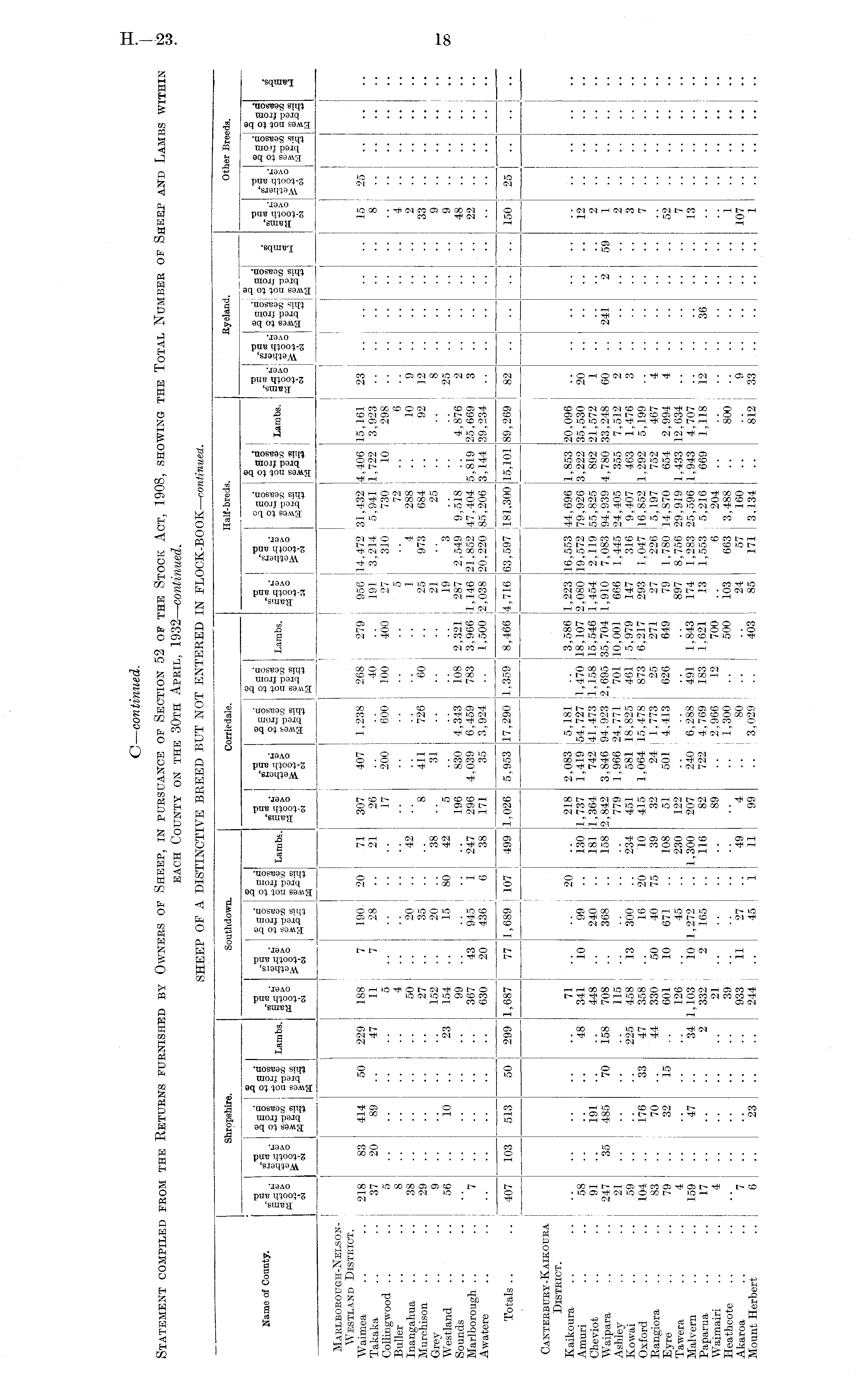 C— continued. Statement compiled from the Returns furnished by Owners of Sheep, in pursuance of Section 52 of the Stock Act, 1908, showing the Total Number of Sheep and Lambs within each County on the 30th April, 1932— continued. SHEEP OF A DISTINCTIVE BREED BUT NOT ENTERED IN FLOCK-BOOK— continued.