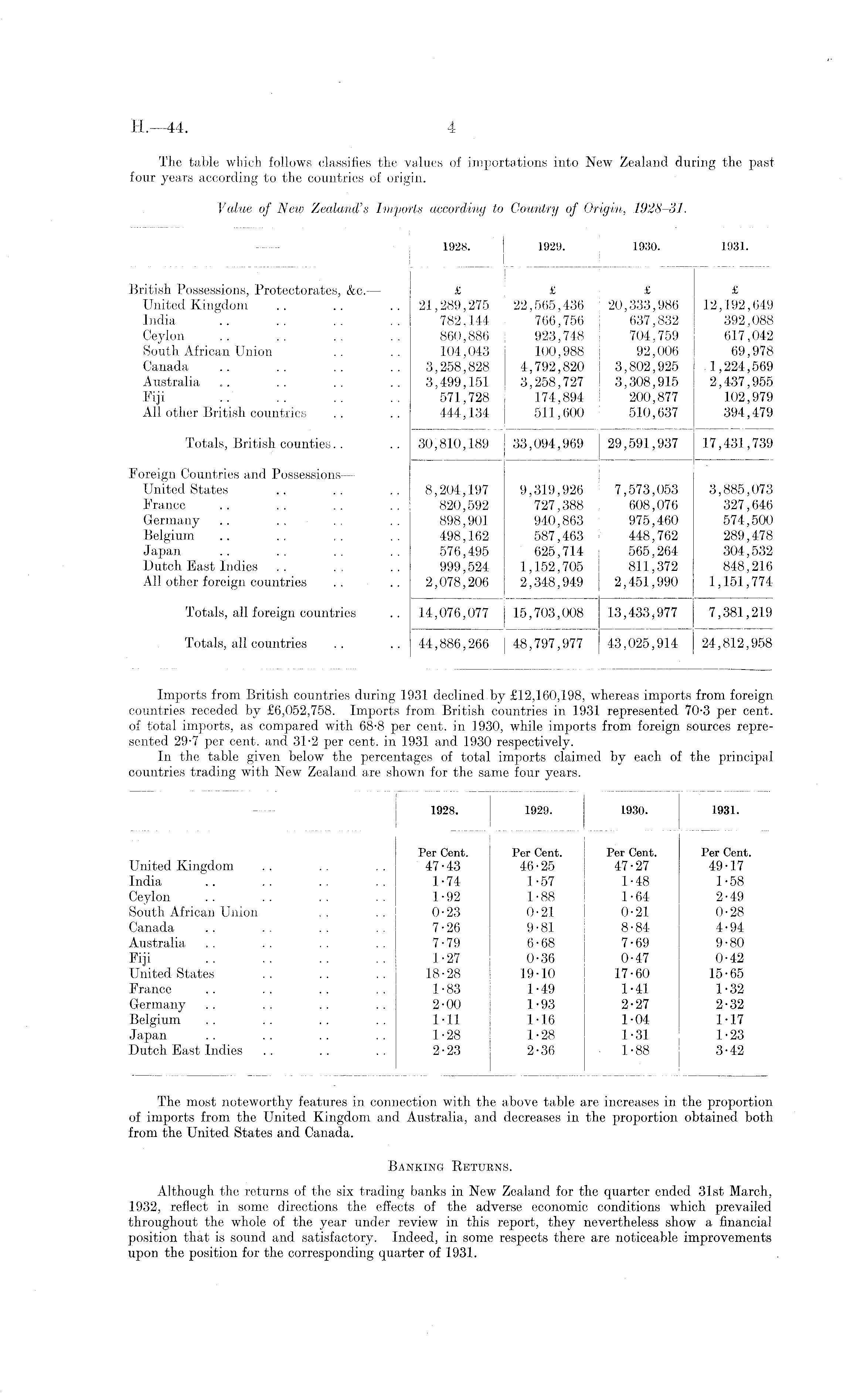 Value of New Zealand's Imports according to Country of Origin, 1928-31.