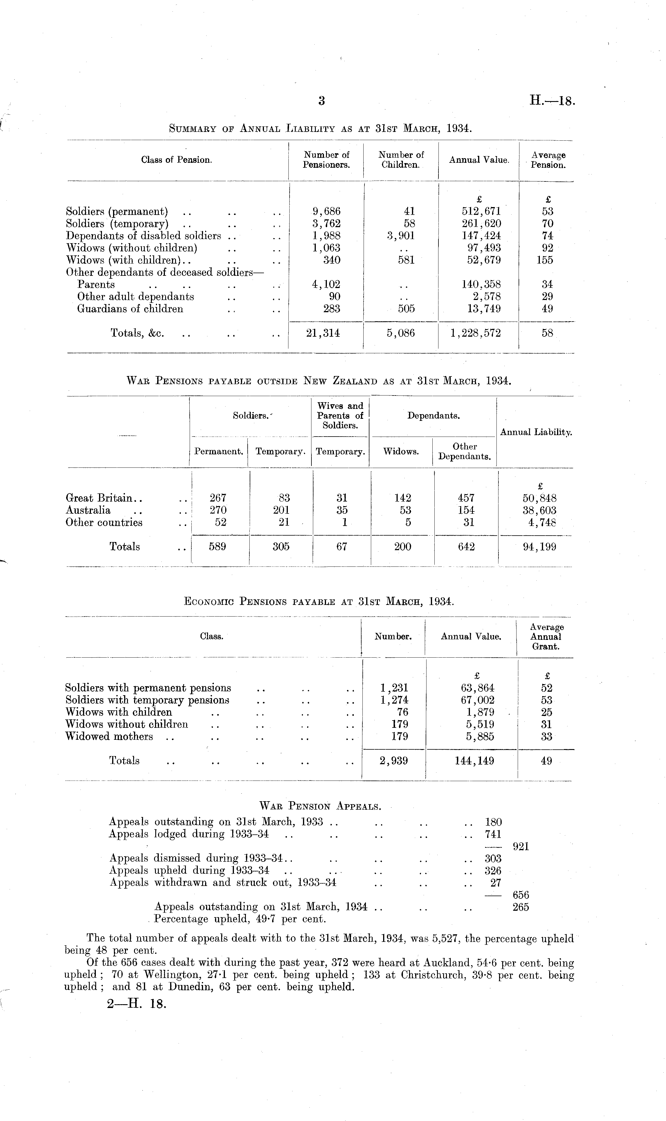 War Pensions payable outside New Zealand as at 31st March, 1934.