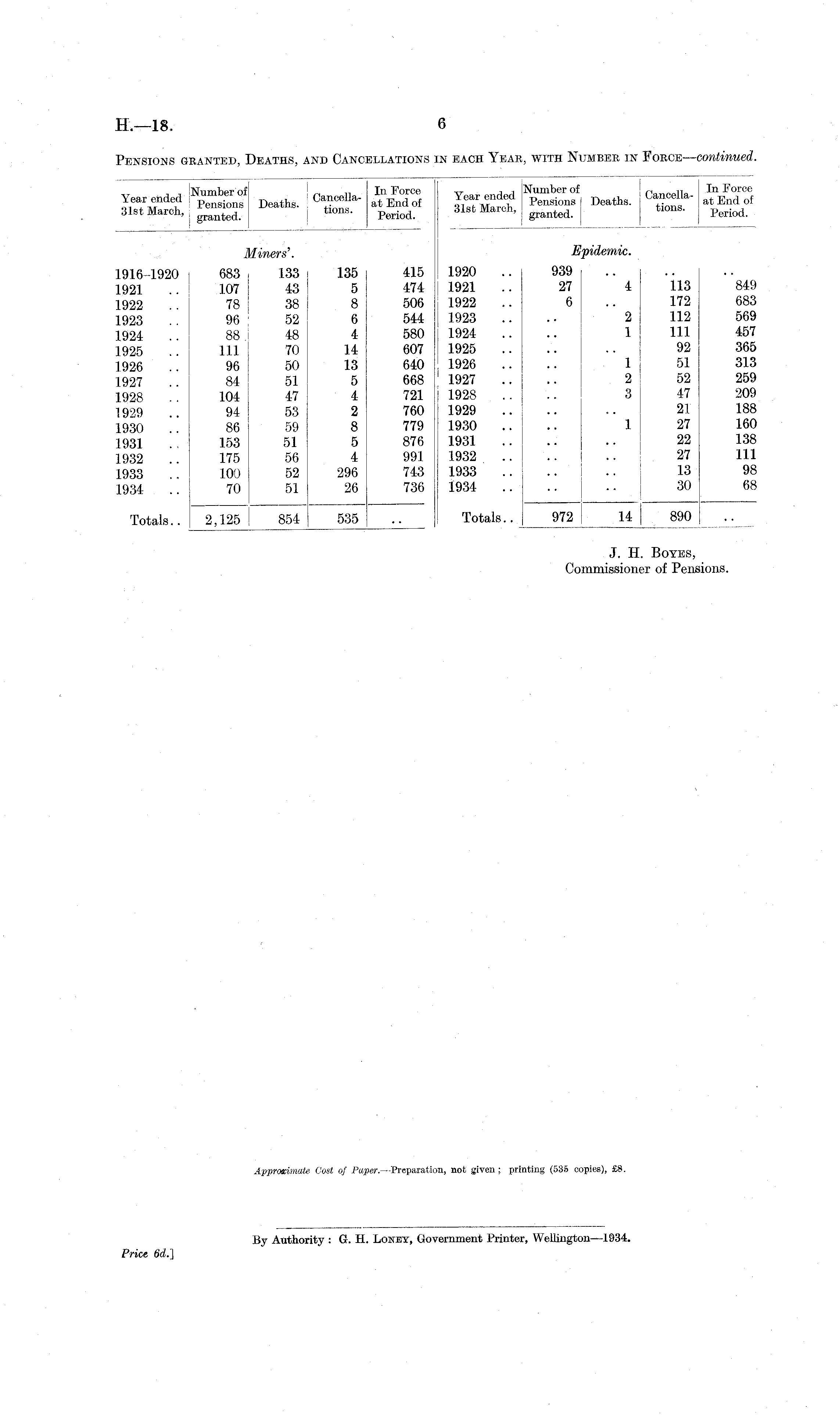 Iwnmbpr ofl ' „ „ In Force it j i iNumberof n In Force Ir?M h Prions I Deaths. ! C ™°° la " at End of Pensions I Deaths. at End of 31st March, ; j | turns. period 31st March, j granted . j tions. Period Miners'. Epidemic. 1916-1920 ! 683 133 135 415 1920 .. 939 1921 107 43 5 474 1921 .. 27 4 113 849 1922 .. 78 38 8 506 1922 .. 6 .. 172 683 1923 96 52 6 544 1923 .... 2 112 569 1924 .. 88 48 4 580 1924 .... 1 111 457 1925 .. | 111 70 14 607 1925 .. .. .. 92 365 1926 .. 96 50 13 640 1926 .... 1 51 313 1927 84 51 5 668 1927 .... 2 52 259 1928 .. ! 104 47 4 721 1928 .... 3 47 209 1929 94 53 2 760 1929 .. .. .. 21 188 1930 .. 86 59 8 779 1930 .... 1 27 160 1931 153 51 5 876 1931 .... .. 22 138 1932 .. 175 56 4 991 1932 .. .. .. 27 111 1933 .. 100 52 296 743 1933 .. .. -. 13 98 1934 .. 70 51 26 736 1934 .. .. • - 30 68 Totals.. 2,125 854 535 Totals.. 972 14 890 ..