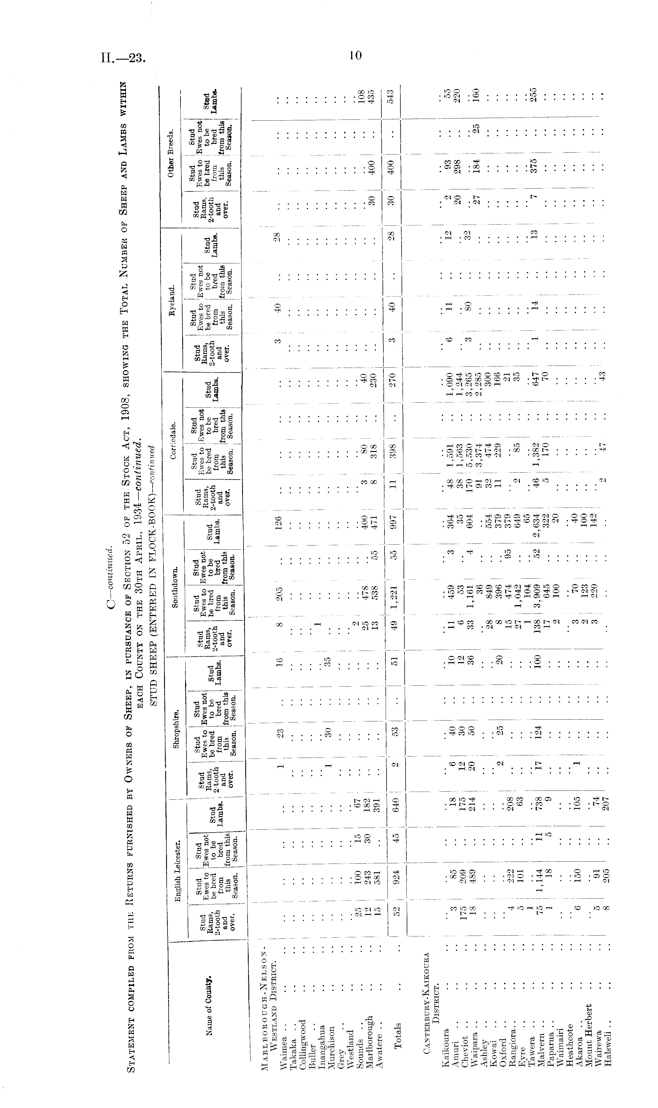 English Leicester. j Shropshire. Southdown. Corriedale. Byeland - Other Breeds. — — S# # a S Season. Son j ° ver " Season. S°Sson 0Ter - Season. S°Ssof OTer - Season. Season. ° veI - Season. Season. °™ r ' Season. Season. ' ! 1 I I I i I I I ~ i' Mablbobofoh-Nslsos-waime™" DK . TRICT " 1 23 .. 16 . 8 205 .. 126 | .. s| 40 j v. 28 .. .. .. ;; Takaka .. .. • • •• • • • • • • • • • • * * *' " * '' * * '" "' '' I j "' | Collingwood .. • • • • • • • • • • • • • • * * * * * * * * * * '' "' '' j '' * Buller .. •. • • • • • • • • • • • • • * * • * *• | ' * " '' *' " i " '' | "| / inangahua •• •• •• ;; ;; ;; ;; ;; ;; ;; ;; ;; ;; Mnrchison .. •. ■ • • • • ■ • • * oU .. oo .... Grey .. • • • • • • • • • • • • • • ■ • • ■ • • • ■ • • " " " " " ;; '.!!!! Westland .. • • ■ ■ • • • • • • • • • • • ■ *' '' '' " '' " '' '' ' Sounds .. .. •• 25 100 15 67 .. .. •• •• •• •• •• •• •• •• •• •• •• jQg Sr ugh :: :: i 1 SS . 30 39? :: :: :: :: " til '55 S? S :: £ :: :: j: « Totals .. .. k"~~ wT 45 640 2 53 j 51 49 1,221 55 997 11 398 .. 270 3 | 40 „J 30 400 543 . Canterbury-Kaekotjba District. Kaikoura .. •• •• •• •• •• ■■ •• - " 3 354 '48 1,591 .. 1,090 6 11 12 2 93 .. 55 175 1 "09 " 175 12 30 12 6 53 .. 35 38 1,563 .. 1,244 20 298 .. 220 SI:: :: :: >11 % :: % 50 .. 36 33 4 m g» .. « 3 80 .. 32 .. 7 ik - 25 ieo Ashley .. .. .. • • • • • ■ • • • 28 849 .. 554 32 474 300 oS :: "2 '25 ;; 20 8 396 .. 379 n 229 .. iee iangta:: " " "4 222 .. 208 16 474 95 379 .. 21 Eyre 8 5 101 .. 63 27 1,042 .. 649 2 85 .. 35 •• •• •• •• Malvern I! !! !! 75 1,144 il 738 "l7 124 iÔo 138 3,909 's2 2,634 « 1,382 " 647 "l 14 .. 13 7 375 .. 255 Panama 1 18 5 9 .. -. -. ■ • 17 645 . . 322 5 170 .. 70 :: :: .. .. 2 100 .. 20 Kr te . :: :: "6 150 :: 105 "1 :: :: :: "3 "70 :: « :: :: :: :: :: Mount Herbert .. 2 3 " Wairewa .. .. 5 91 .. ] 74 3 220 .. 142 . .. .. .. .. .. •• •• •• Halsweli ... .. •• 8 205 .. 207 .. .. .. ..