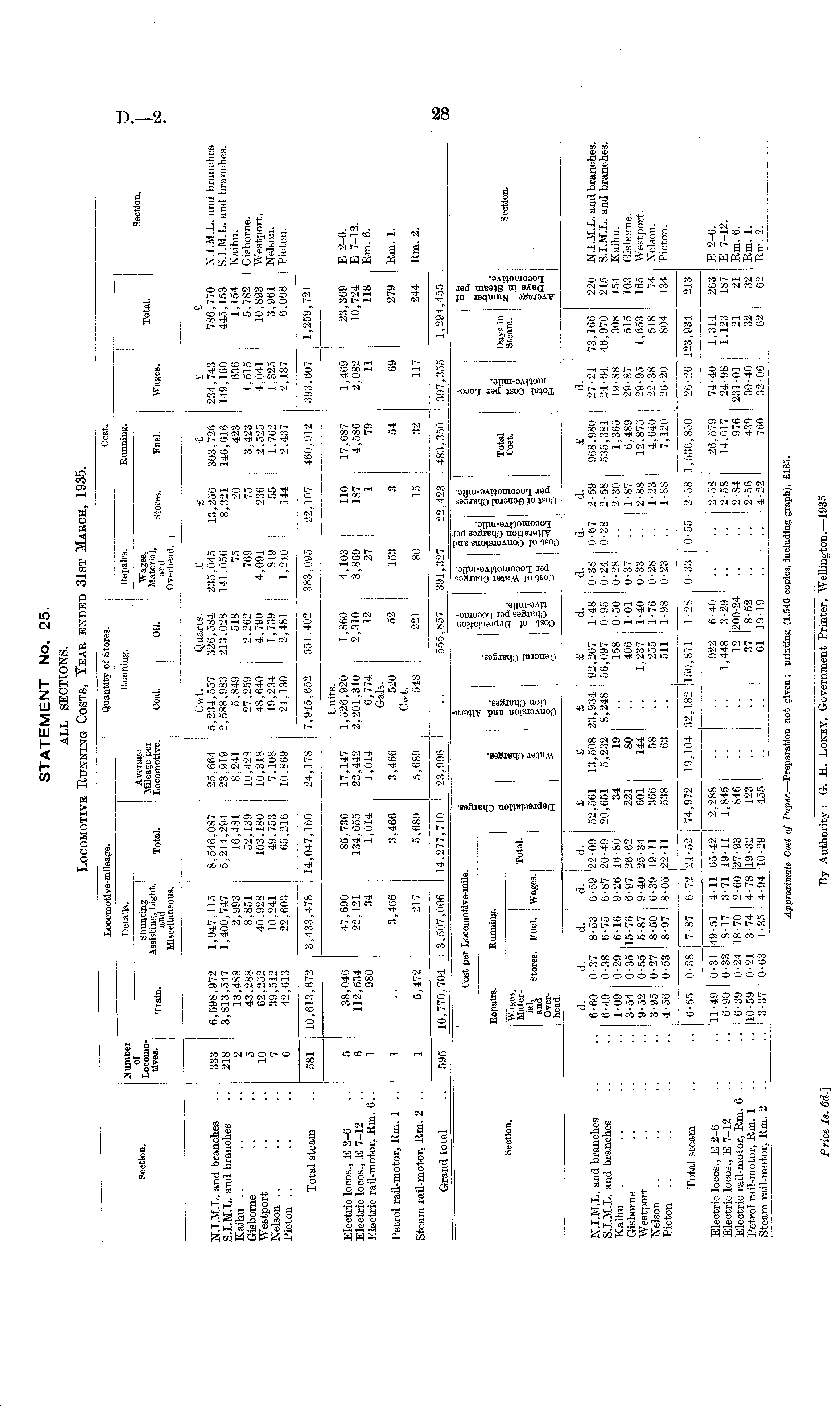 STATEMENT No. 25. ALL SECTIONS. Locomotive Running Costs, Year ended 31st March, 1935.