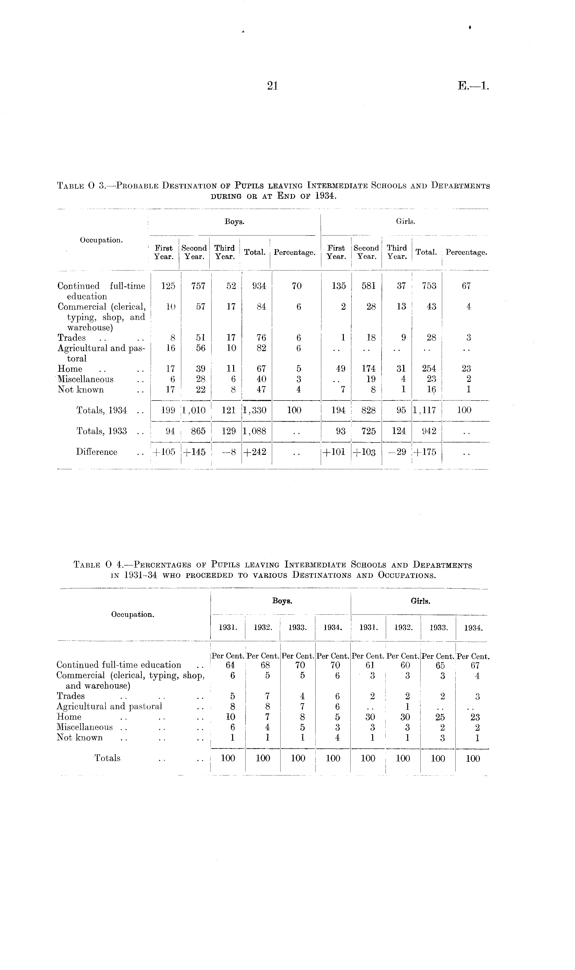 Table O 3. —Probable Destination of Pupils leaving Intermediate Schools and Departments during or at End of 1934.