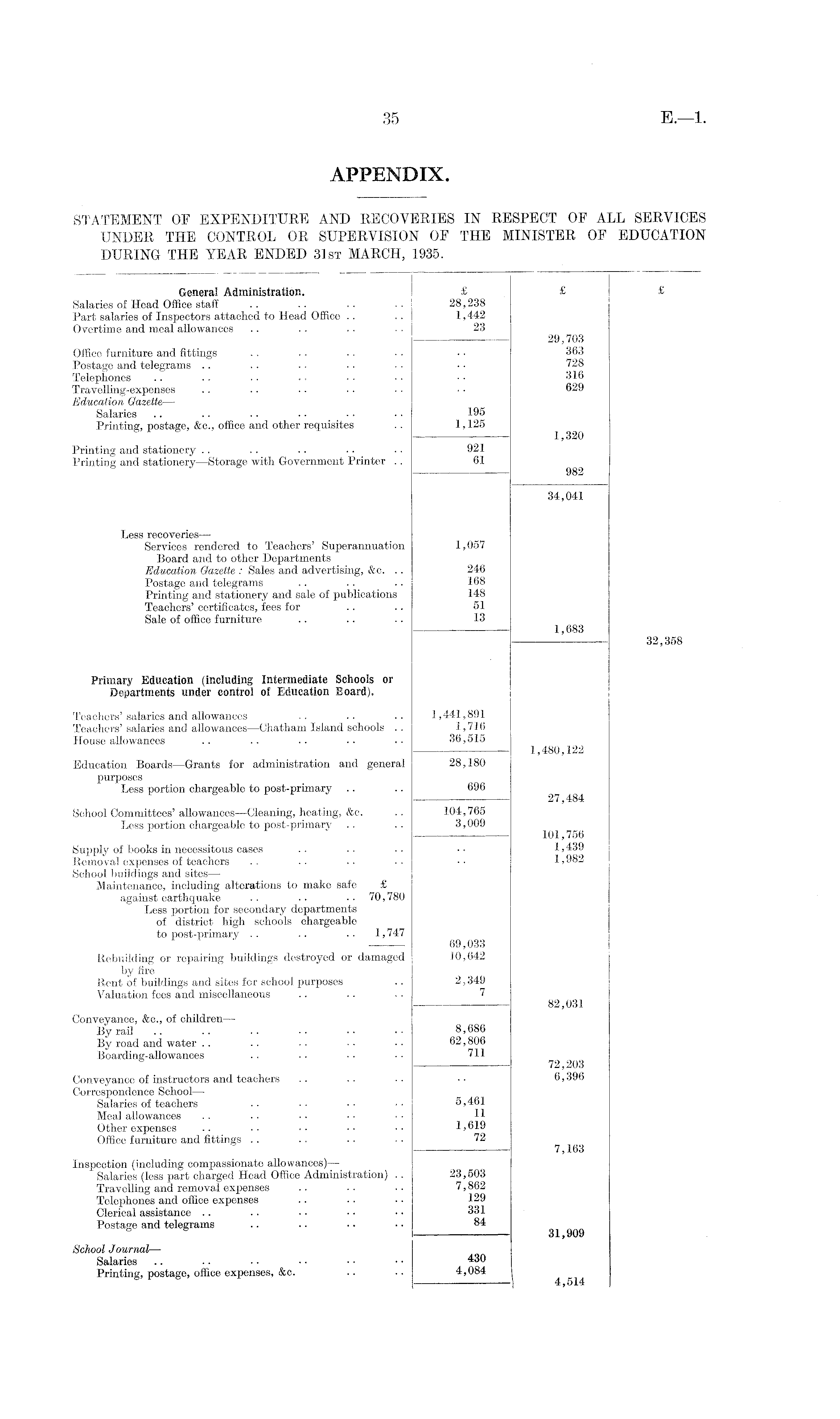 STATEMENT OF EXPENDITURE AND RECOVERIES IN RESPECT OF ALL SERVICES UNDER THE CONTROL OR SUPERVISION OF THE MINISTER OF EDUCATION DURING THE YEAR ENDED 31ST MARCH, 1935.