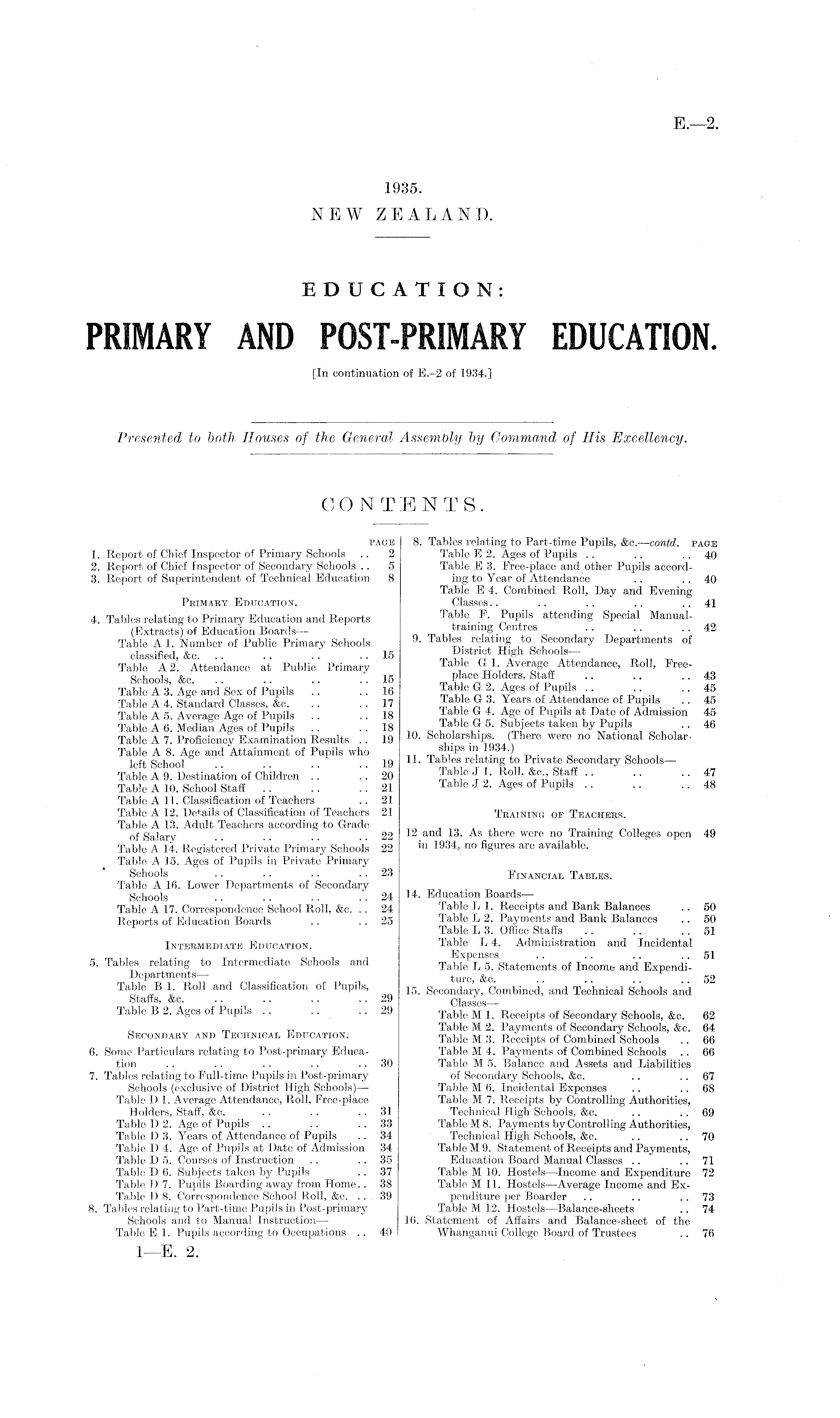 EDUCATION: PRIMARY AND POST-PRIMARY EDUCATION. [In continuation of E.-2 of 1934.]