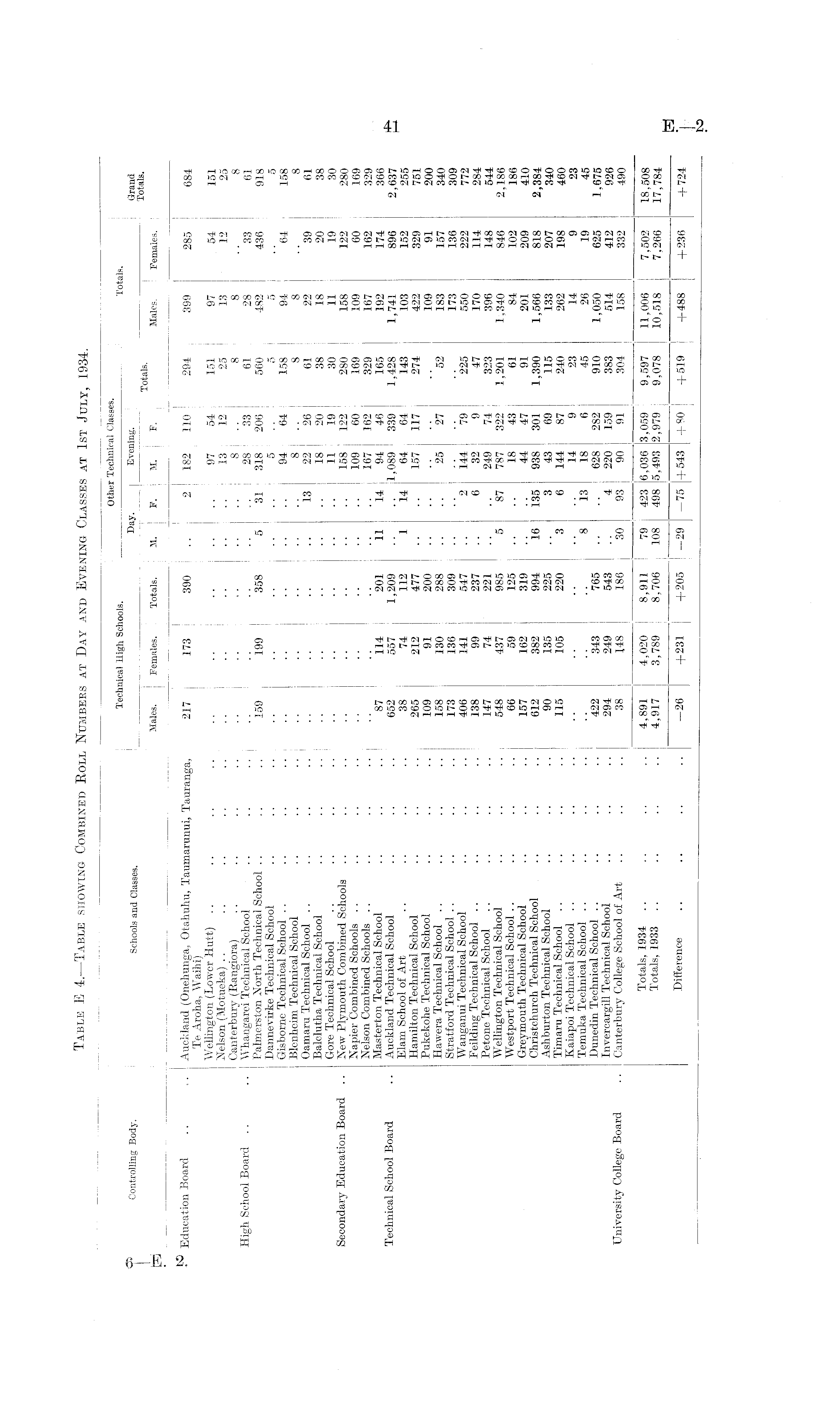 Table E4.—Table showing Combined Roll Numbers at Day and Evening Classes at 1st July, 1934.