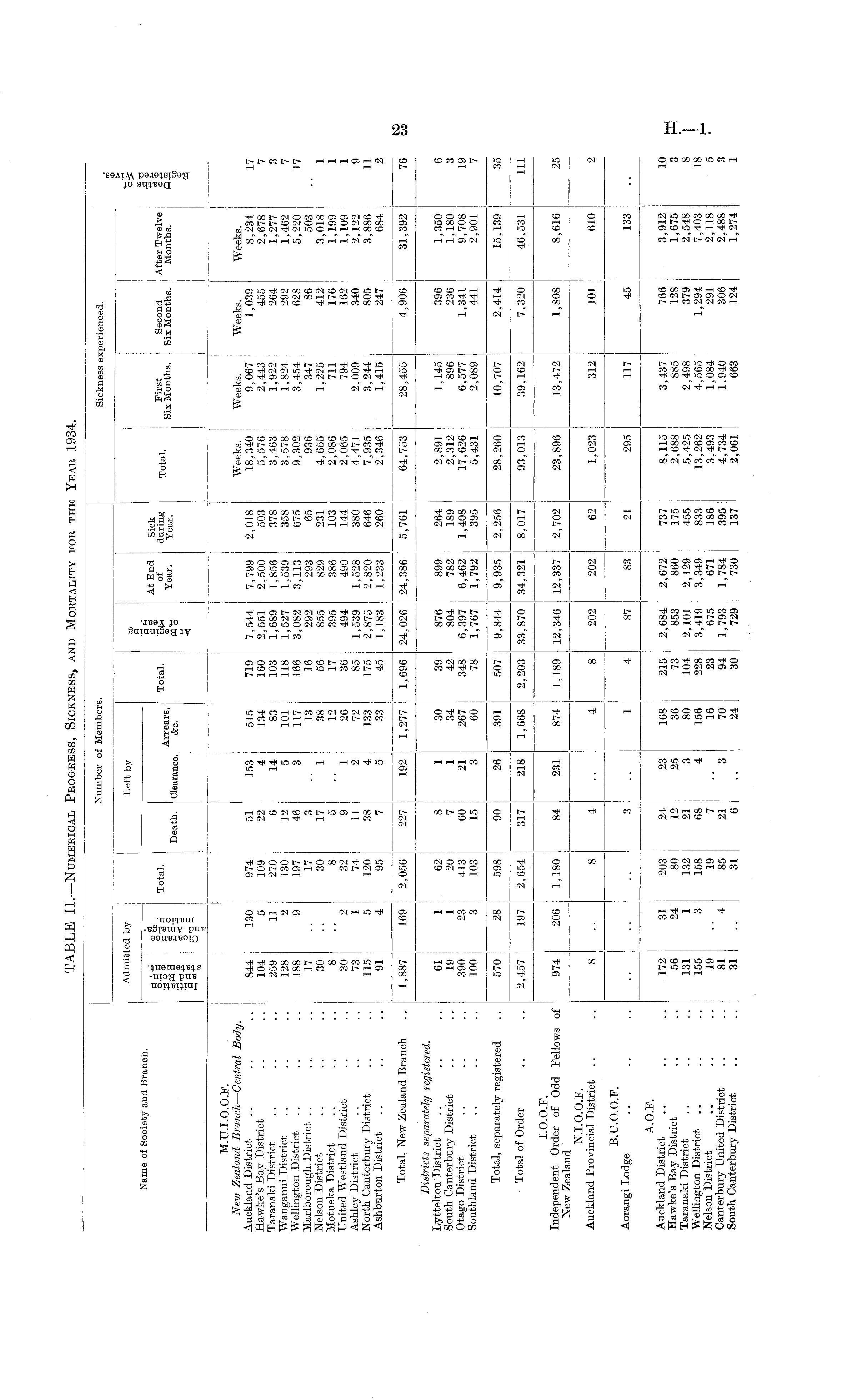 TABLE II.—Numerical Progress, Sickness, and Mortality for the Year 1934.