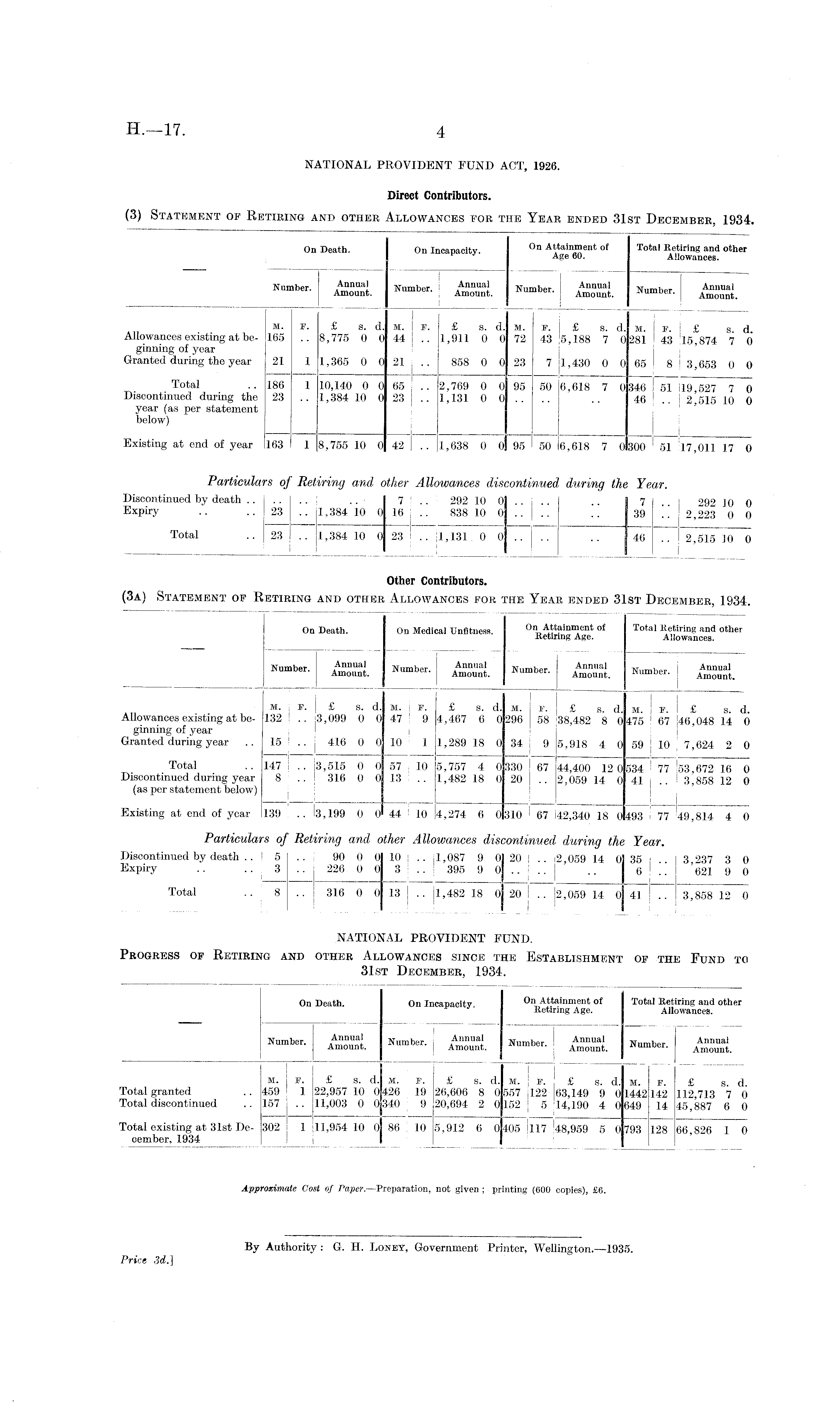 NATIONAL PROVIDENT FUND ACT, 1926. Direct Contributors. (3) Statement of Retiring and other Allowances for the Year ended 31st December, 1934.