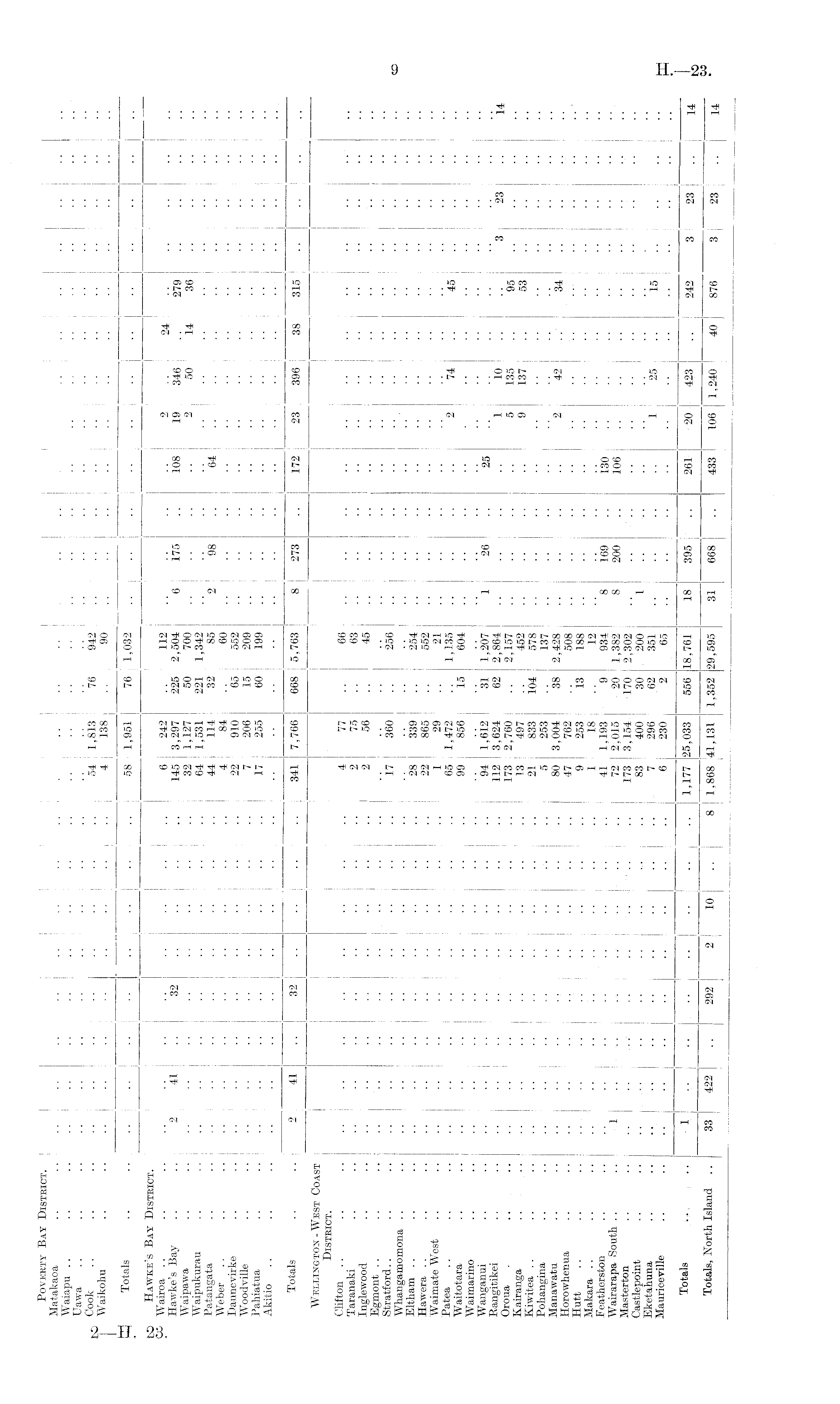 Povekty Bay District. I i Matakaoa Waiapu .. Uawa .. Cook .. .. J] 54 J 1,813 76 942 '.'. '.'. " ['. Waikohu .. .. .. .. . . .. .. . , .. .. 4 j 138 .. 90 Totals .. .. .. .. .. .. .. .. .. .. 58 I 1,951 76 | 1,032 .. .. .. .. .. .. .. .. .. .. .. ... Hawke's Bay District. Wairoa .. .. .. .. .. .. .. .. .. .. .. 6 242 .. 112 .. .. .. .. 2 24 Hawke's Bay .. .. 2 41 .. 32 .. .. .. .. 145 3,297 225 j 2,504 6 175 108 19 346!' 279 Waipawa .. 32 1,127 50 700 .. .. 2 50 ! 'i4 36 Waipukurau .. .. .. .. .. .. .. .. .. .. 64 1,531 221 1,342 Patangata .. .. .. .. .. .. .. .. . . .. 44 114 32 ! 85 2 98 64 \ '.'. Weber .. .. .. .. . . .. .. .. .. .. . . 4 84 .. 60 Dannevirke .. .. .. .. .. .. . . .. .. .. 22 910 65 552 .. .. .. .. . . '' Woodville .. .. .. .. .. .. . . .. . . .. <j 206 15 209 .. .. Pahiatua .. .. .. .. .. .. .. .. . . .. 1 7 255 60 199 Akitio Totals •• •• 2 I 41 .. 32 .. .. .. .. 341 7,766 668 5,763 8 273 .. 172 23 396 \ 38 315 .. .. .. Wellington - West Coast District. Clifton .. .. . . 4 77 66 i ... . { Taranaki .. .. .. .. .. .. .. .. .. _._ 2 75 .. 63 Inglewood .. .. .. .. .. .. .. .. .. .. 2 56 .. 45 Egmont .. .. .... Stratford.. .. .. .. .. .. .. .. .. .. .. 17 360 .. 256 .. '.'. '.'. .] " Whangamornona .................... - .... Eltham . . .. .. . . .. .. .. .. .. .. ., 28 339 .. 254 '.'. ., .. .. Hawera . . .. .. .. .. .. .. . . . . .. .. 22 865 . . 552 .. .. .. . . .. \\ Waimate West .. .. .. .. .. .. .. .. ,, ., 1 29 ! . . 21 Waitotara .. .. .. . . . . . . .. . . . . . . 99 856 15 604 Waimarino Wanganui .. .. .. .. .. .. .. .. ., .. 94 1,612 31 1,207 1 26 '.'. 25 Rangitikei .. j 112 3,624 62 2,864 ...... 1 10 "3 ' h 14 Oroua • •• 173 2,760 .. 2,157 5 135 95 Kairanga .. - ■ 13! 497 .. 452 . 9 137 53 Kiwitea .. .. .. .. .. .. . . .. .. . . ., 21 833 104 578 Pohangina .. .. . . .. . .. ,. .. .. _ # 5 253 137 Manawatu .. .. .. .. ., .. .. .. .. .. 80 3,004 38 2,428: .. '.'. .; .[ 2 42 34 Horowhenua .. .. .. .-.-.. .. .. ,. .. .. .. 47 762 .. 508 Hutt .. .. .. .. .... .: .. J 9 253 13 188 Makara •• •• : .. 1 18 j .. 12 Featherston .. .. .. .. .. .. : . .. .. .. 41 i 1,193 9 934 8 169 130 Wairarapa South .. .. 1 --,-,:. - -.,- .,_ -.. -..-.. .. 72 2,0)5 -20 ! 1,382 8 200 106 " I Masterton .. ,. .. ...... .. 173 3,154 170 2,302 Castlepoint ,. .. ..... . .,,_ . .. .. .. .. .. 83 400 30 200 1 Eketahuna .. 7 ! 296. 62 351 " "l '«5 'X5 I Maurieeville .. .. .. .. .. .. .. .. .-. .. ' ' 6 230 2 65 Totals .,,,., , .. 1 .. j 1,177 25,033 556 18,761 18 395 .. 261 20 423 .. 242: 3 ( 23 ~ 14~ Totals, North Island .. 33 422 .. 292 2J 10 .. 8 j 1,868 41,131 1,352 29,595 31 668 .. 433 106 1,240 40 876 3~1 23 ~H"