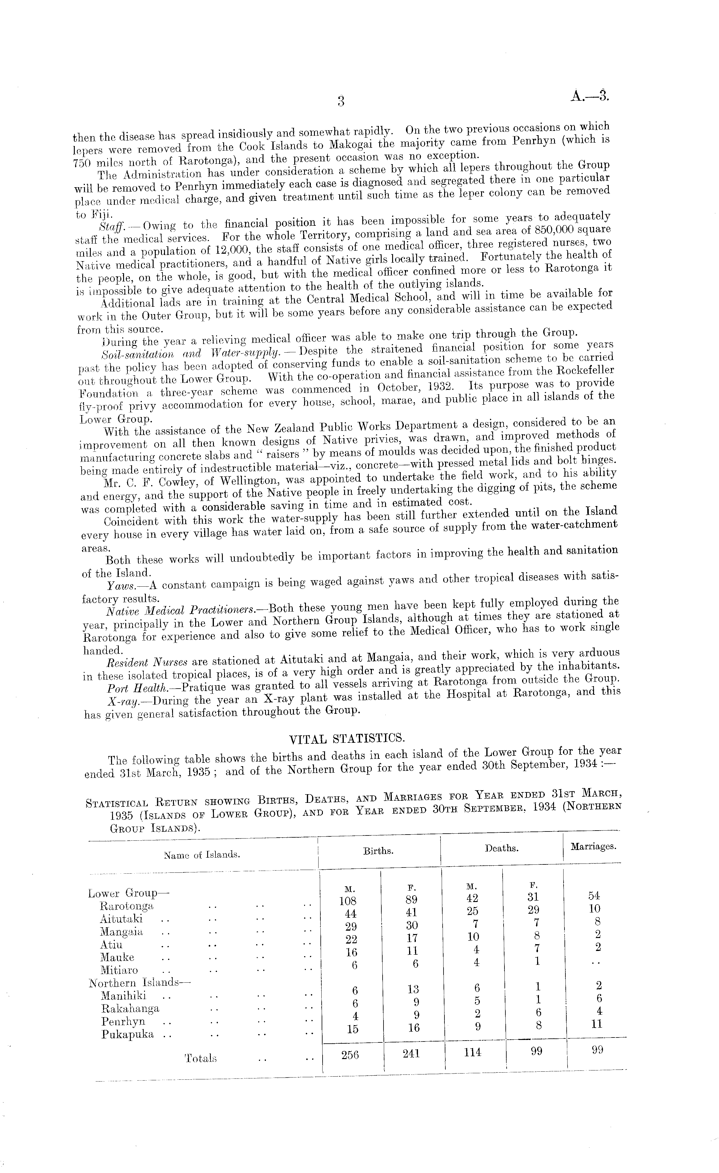 Statistical Return showing Births, Deaths, and Marriages for Year ended 31st March, 1935 (Islands of Lower Group), and for Year ended 30th September, 1934 (Northern Group Islands).