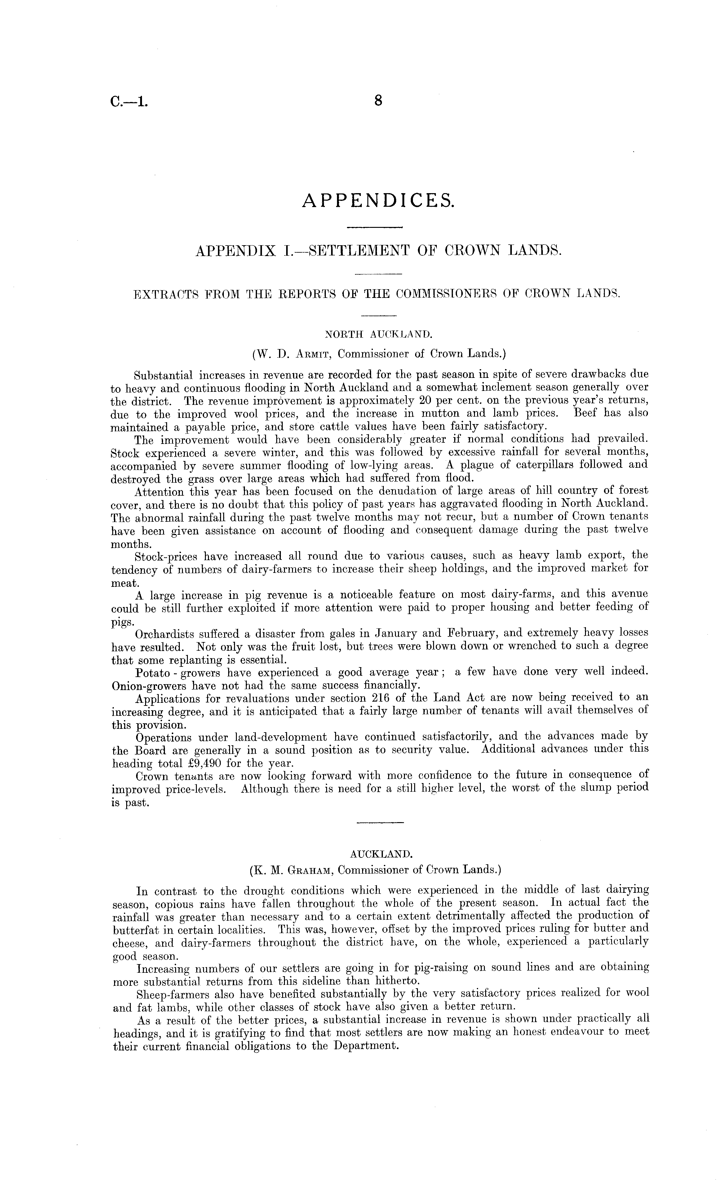 APPENDIX I.—SETTLEMENT OF CROWN LANDS.