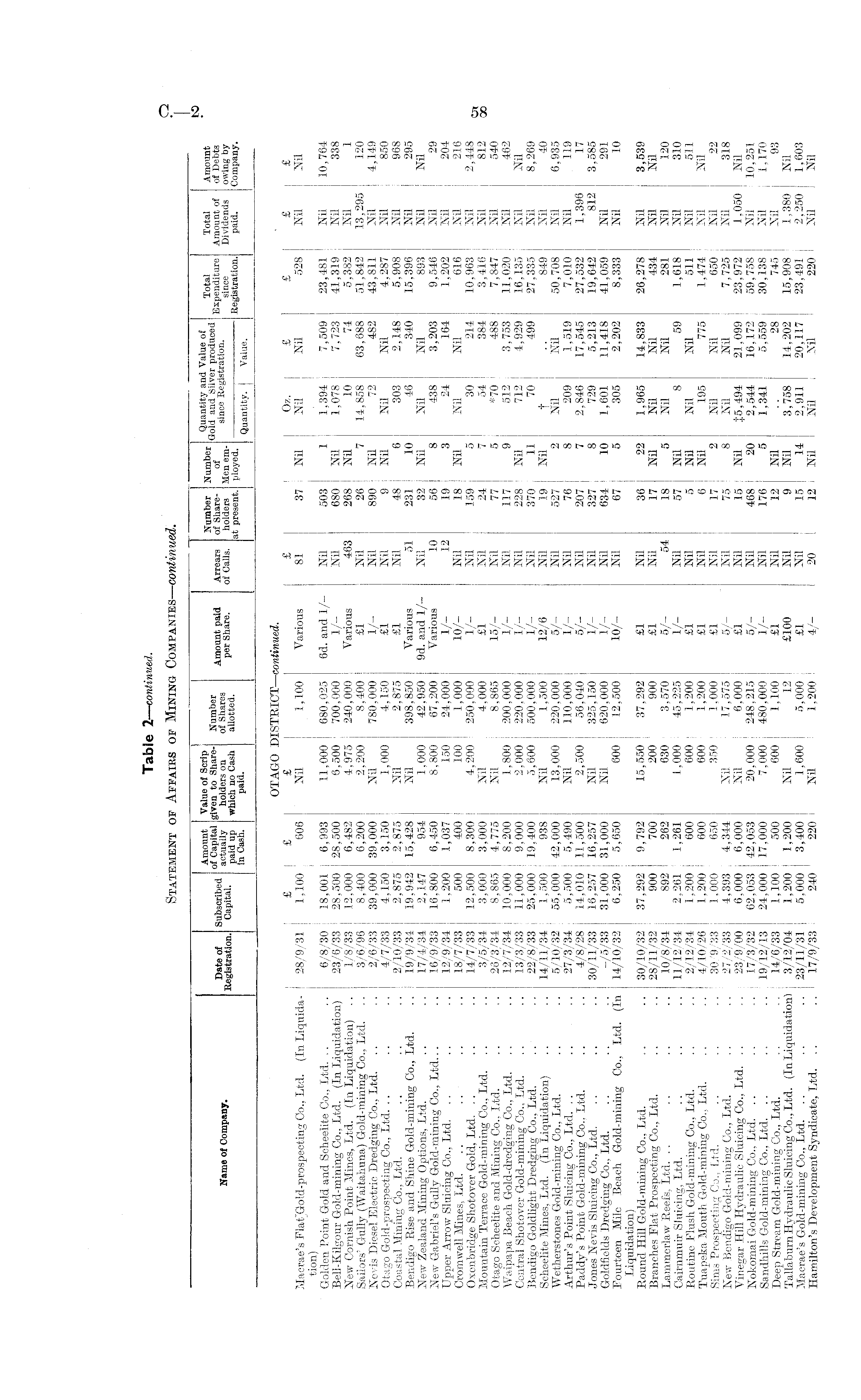 Tab le 2— continued. Statement of Affairs of Mining Companies— continued.