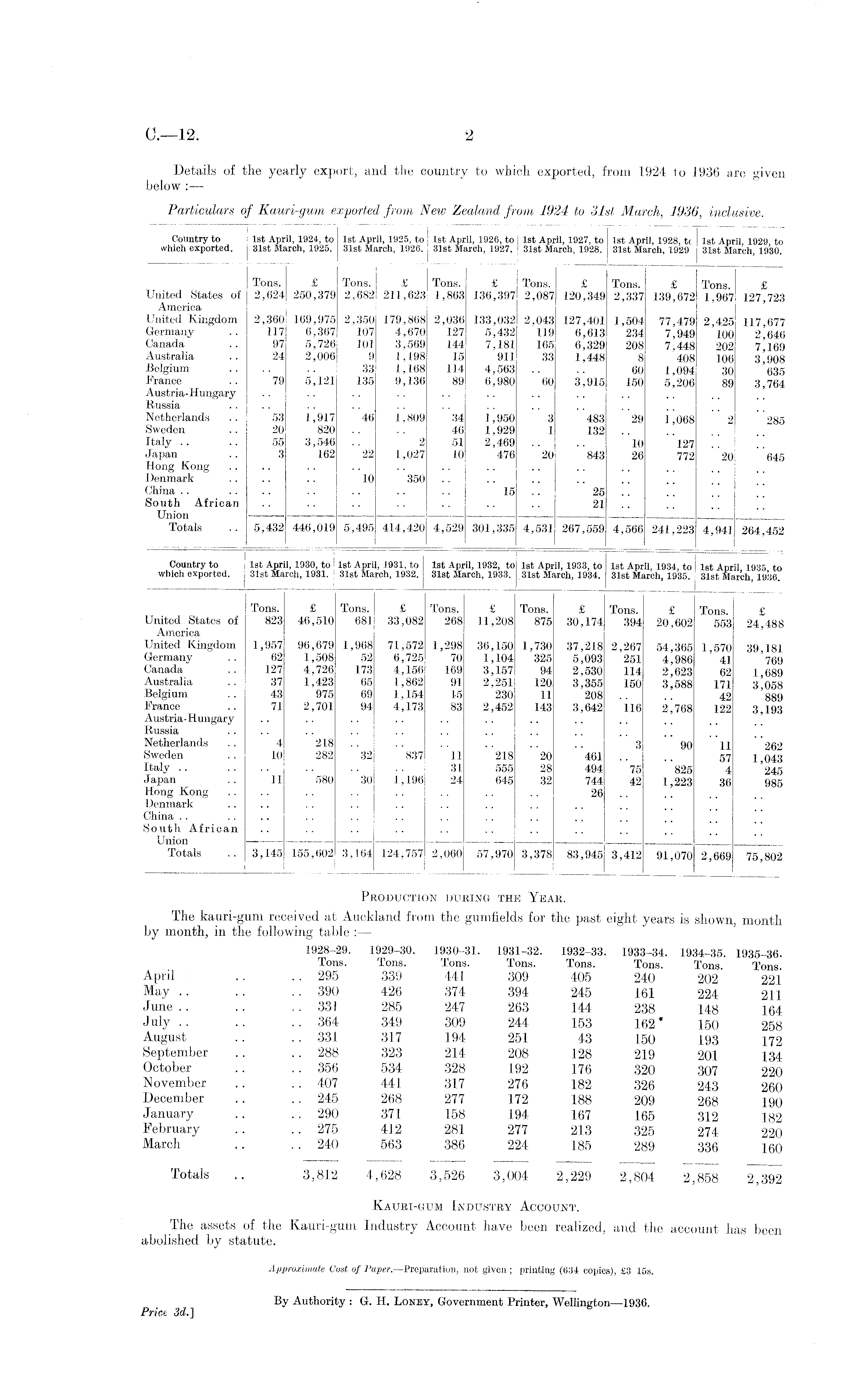 Kauri-gum Industry Account. The assets of the Kauri-gum Industry Account have been realized, and the account has been abolished by statute. Approximate Cost of Paper.—Preparation, not given; printing (634 copies), £3 15s.