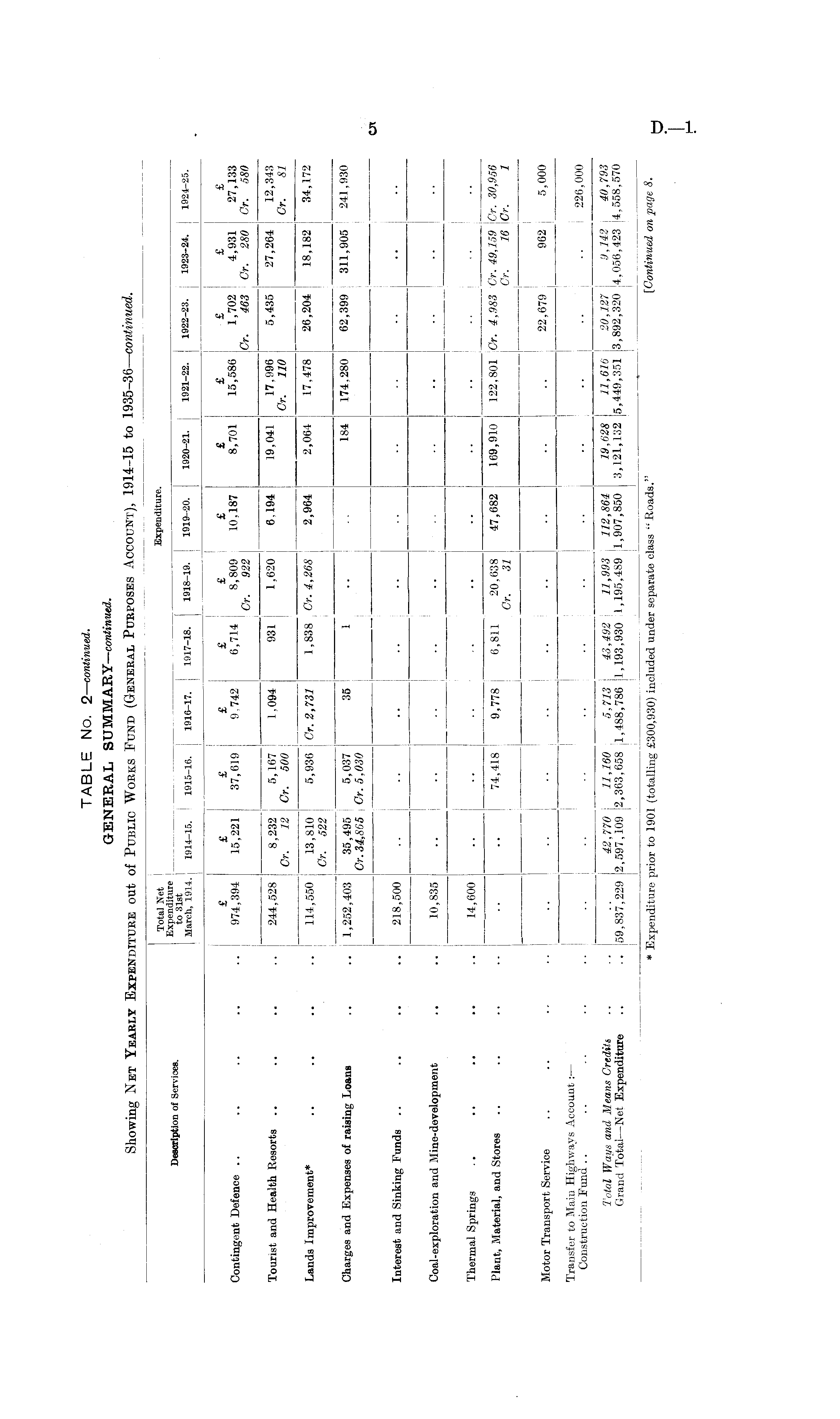 TABLE No. 2— continued. GENERAL SUMMARY-continued. Showing Net Yearly Expenditure out of Public Works Fund (General Purposes Account), 1914-15 to 1935-36— continued.