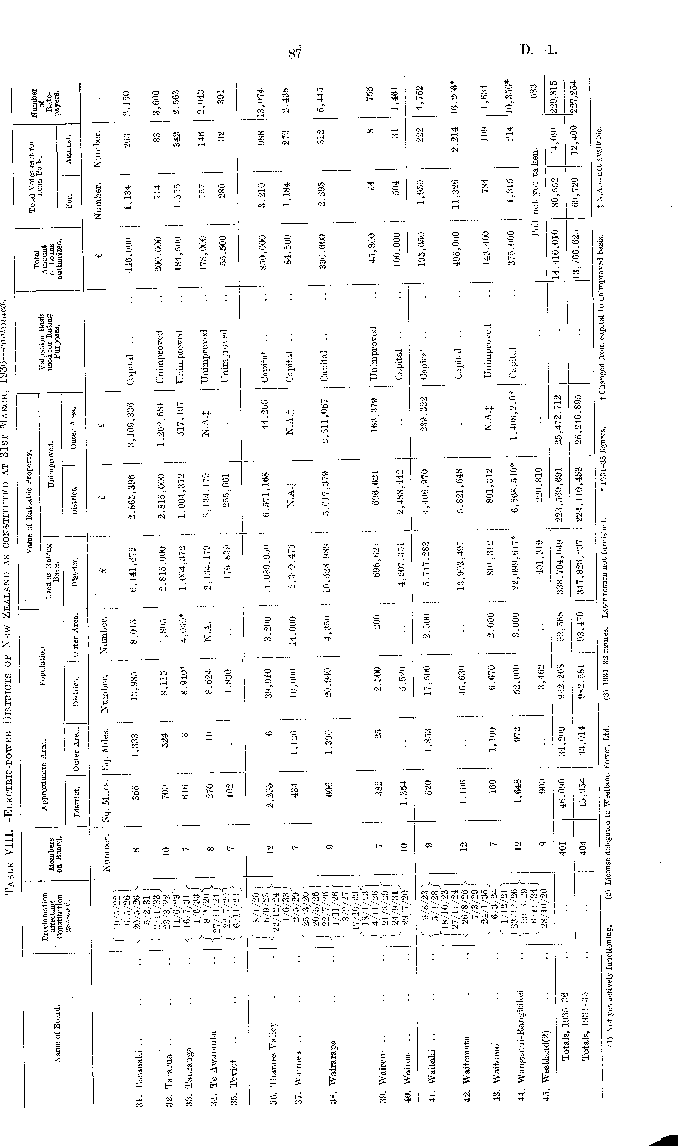 Table VIII. -Electric-power Districts of New Zealand as constituted at 31st March, 1936-continued.