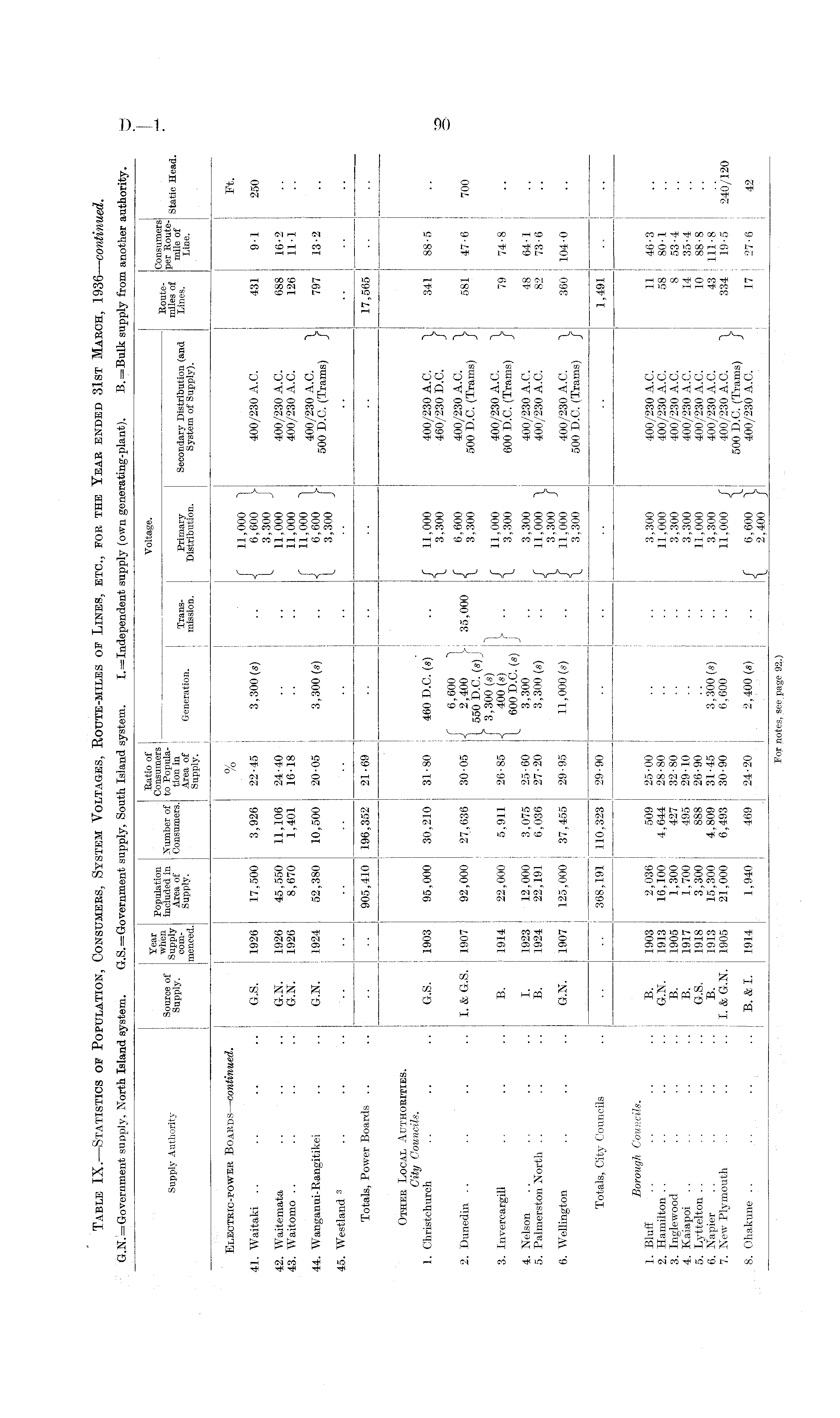 Table IX.—Statistics of Population, Consumers, System Voltages, Route-miles of Lines, etc., for the Year ended 31st March, 1936— continued.