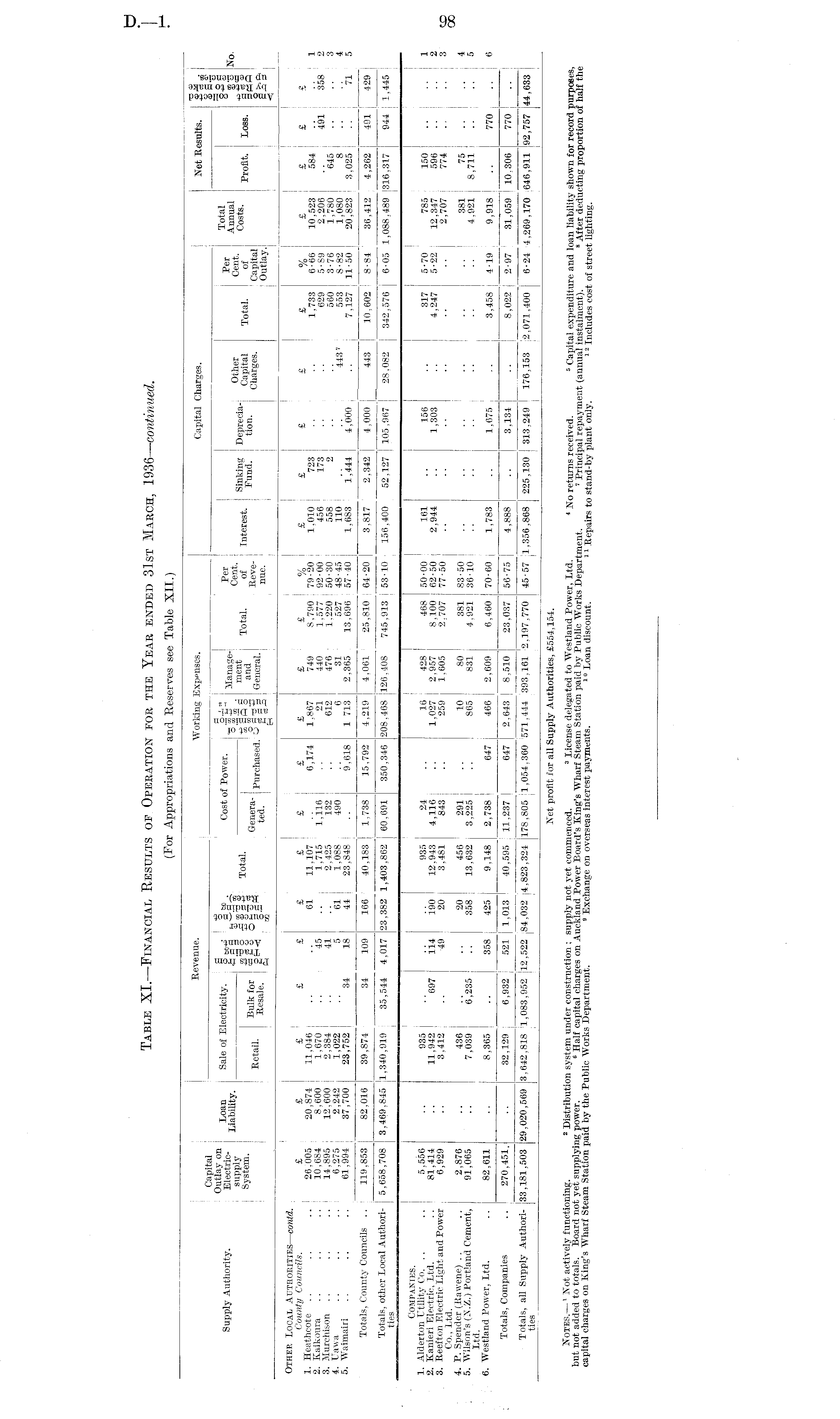 Table XI.—Financial Results of Operation for the Year ended 31st March, 1936— continued.