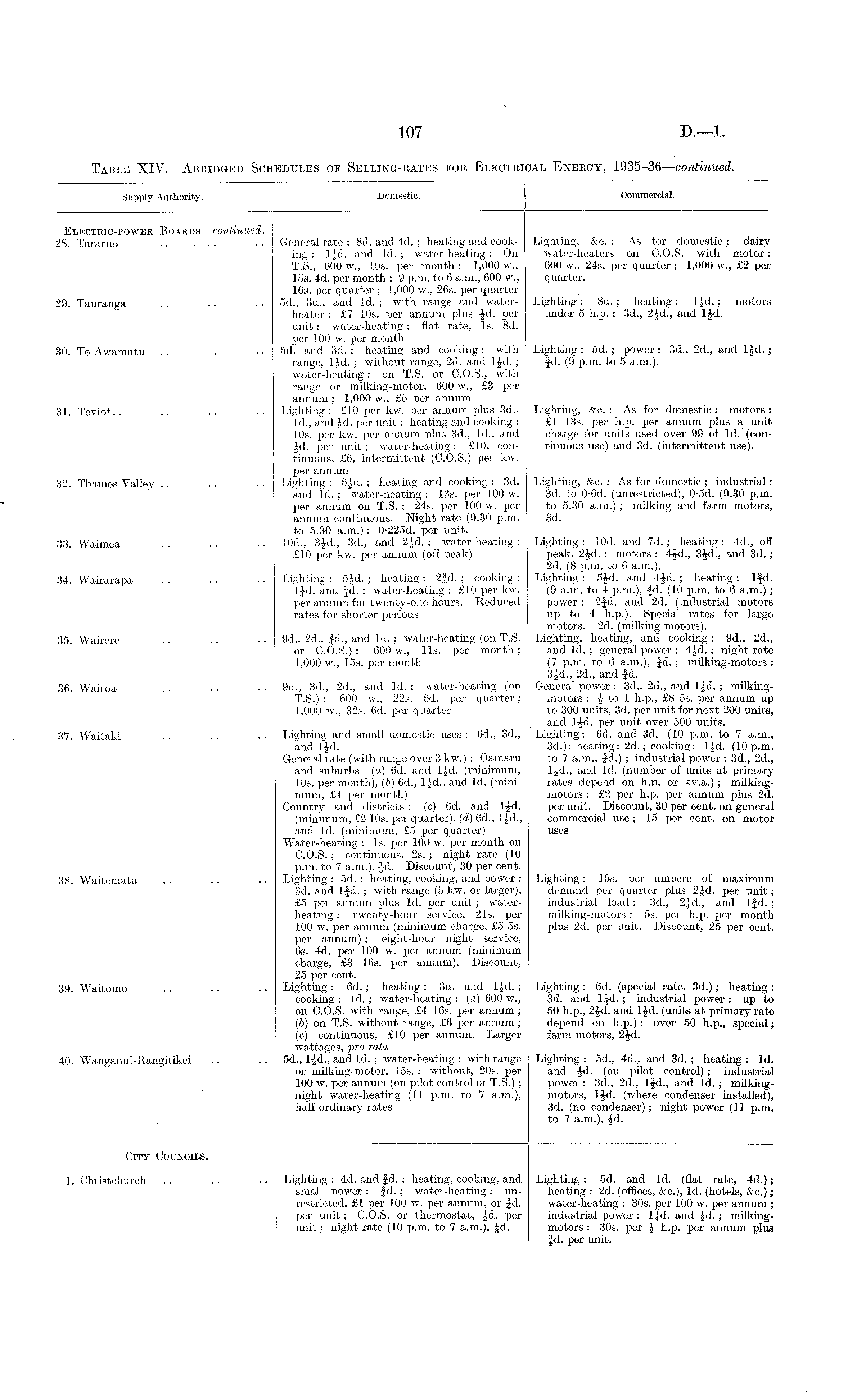 Table XIV. —Abridged Schedules of Selling-rates for Electrical Energy, 1935-36 —continued.