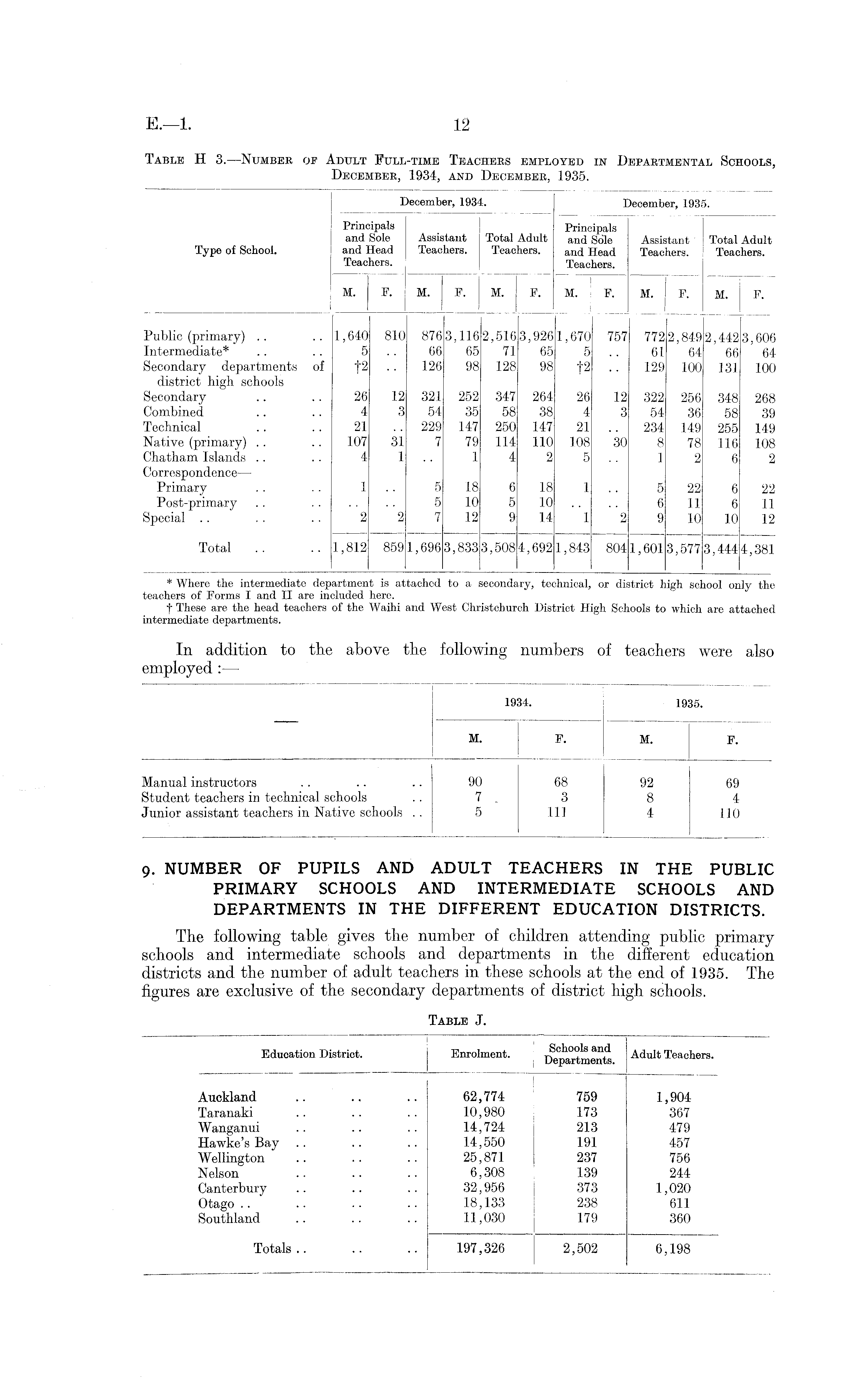 Table H3.—Number of Adult Full-time Teachers employed in Departmental Schools, December, 1934, and December, 1935.