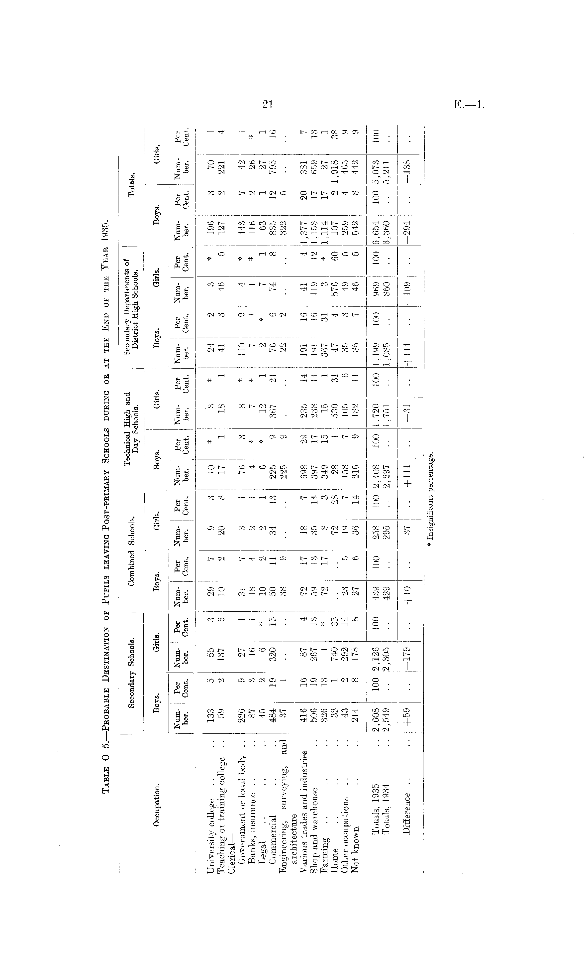Table O5.—Probable Destination of Pupils leaving Post-primary Schools during or at the End of the Year 1935.