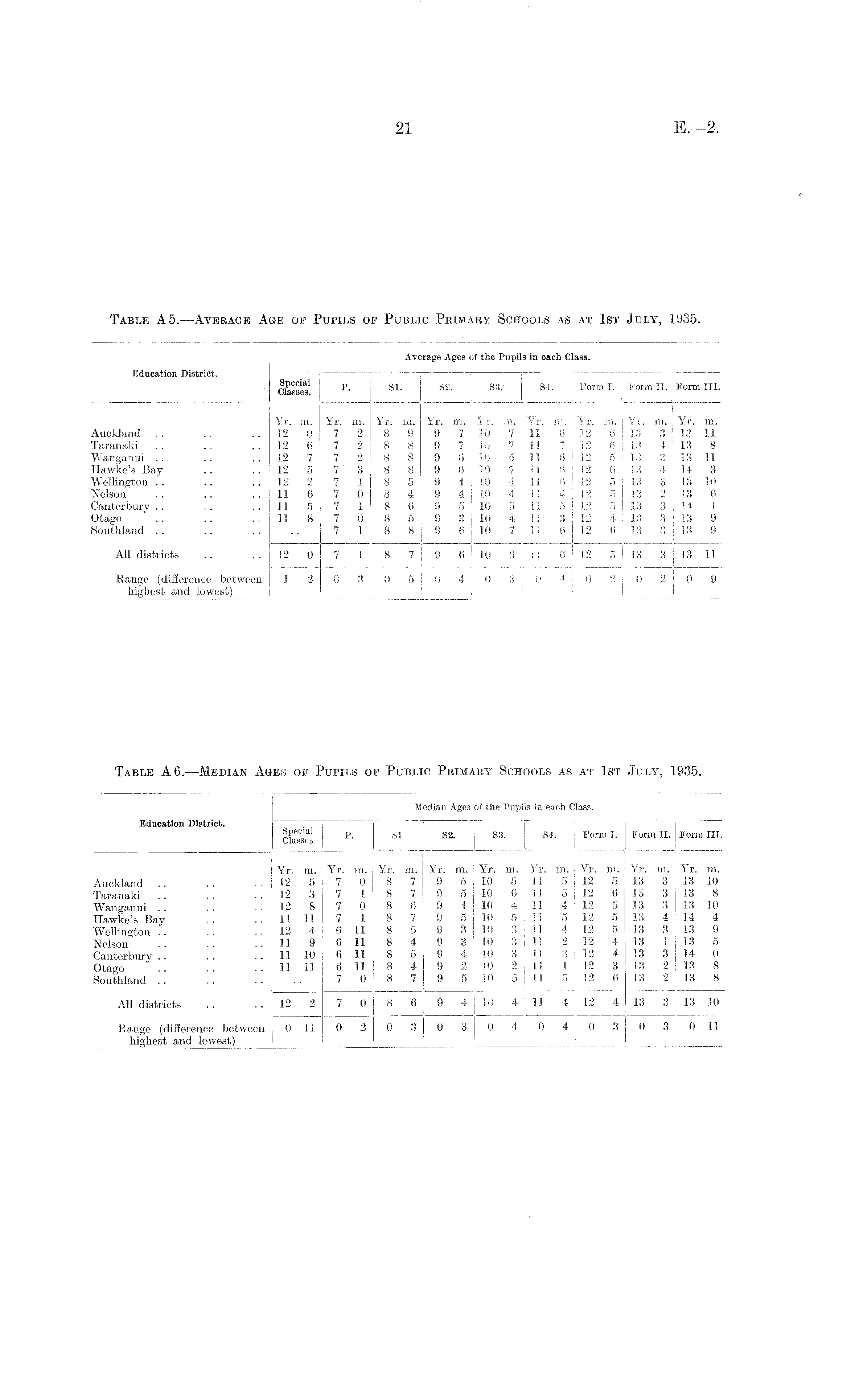 Table A5.-Average Age of Pupils of Public Primary Schools as at 1st July, 1935.