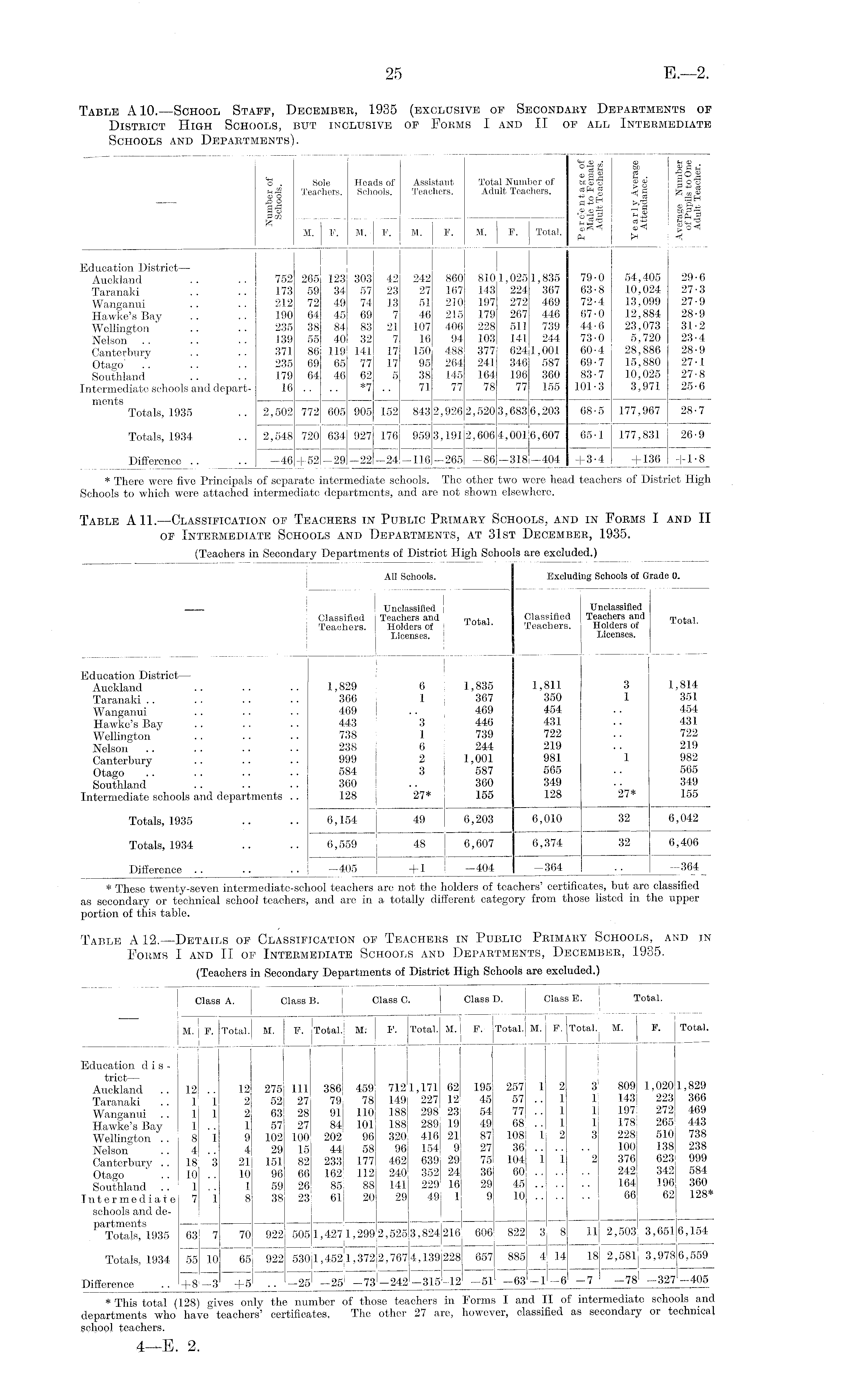 Table A10.—School Staff, December, 1935 (exclusive of Secondary Departments of District High Schools, but inclusive of Forms I and II of all Intermediate Schools and Departments).
