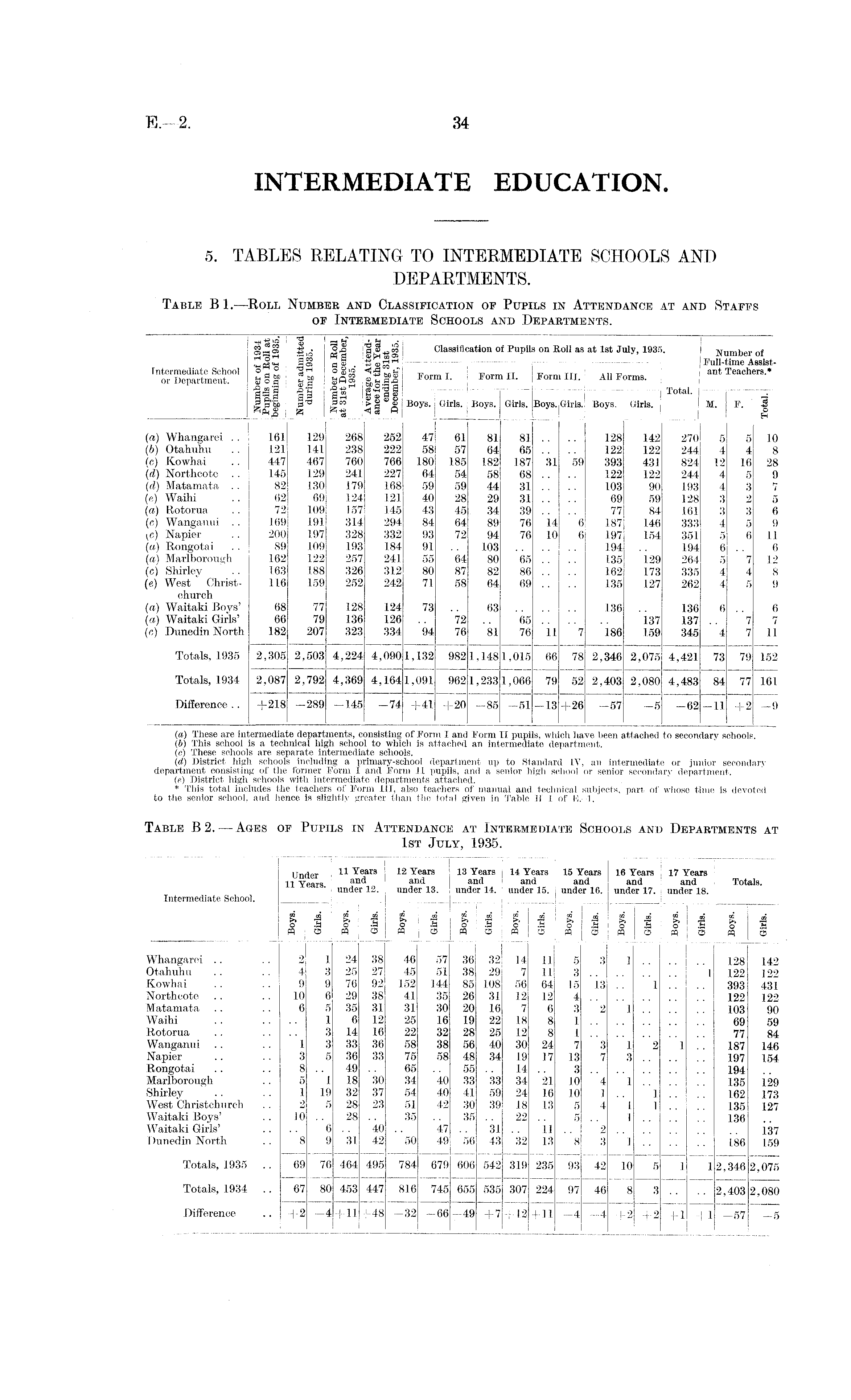 5. TABLES RELATING TO INTERMEDIATE SCHOOLS AND DEPARTMENTS. Table B1.—Roll Number and Classification of Pupils in Attendance at and Staffs of Intermediate Schools and Departments.