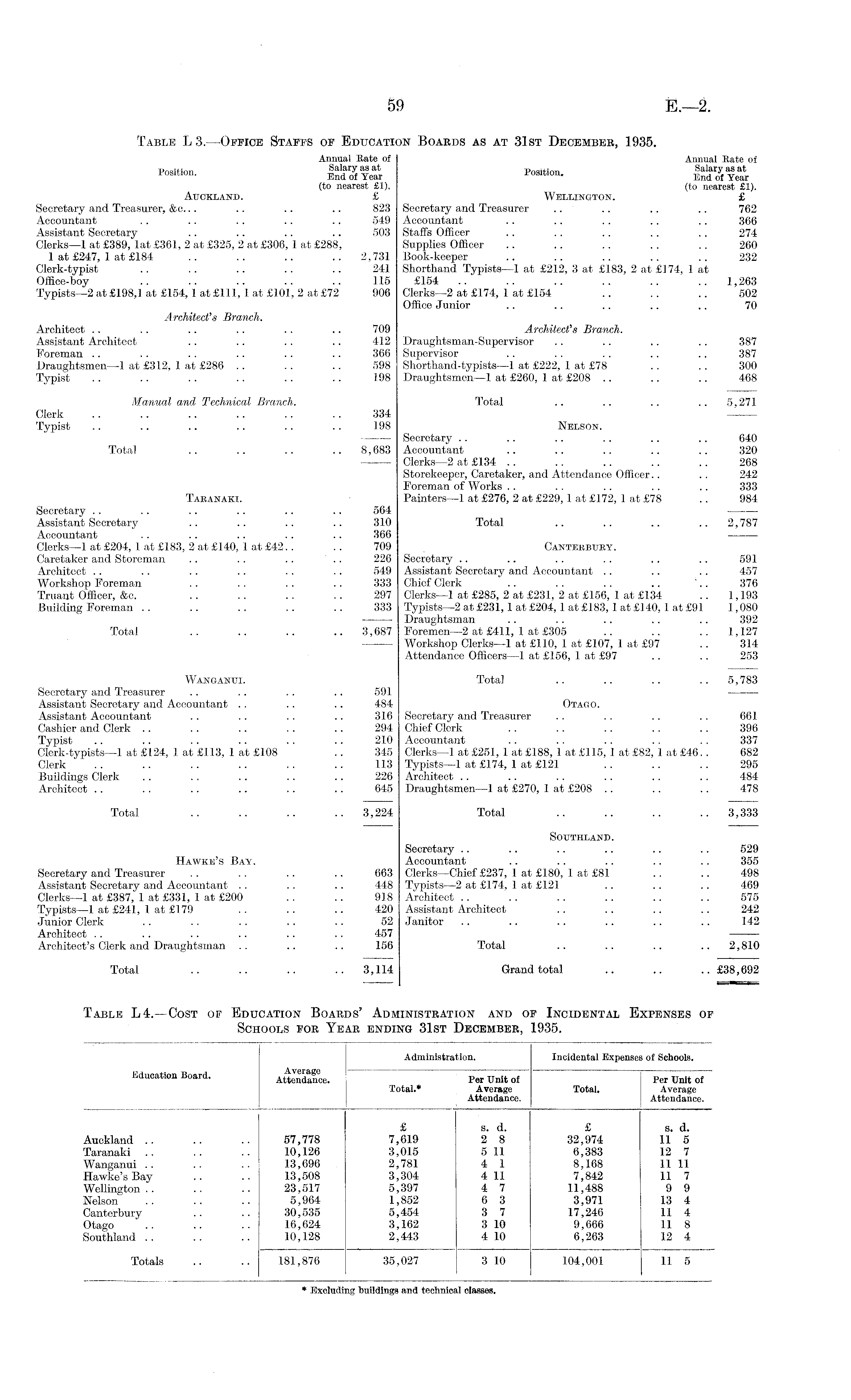 Table L4.—Cost of Education Boards' Administration and of Incidental Expenses of Schools for Year ending 31st December, 1935.