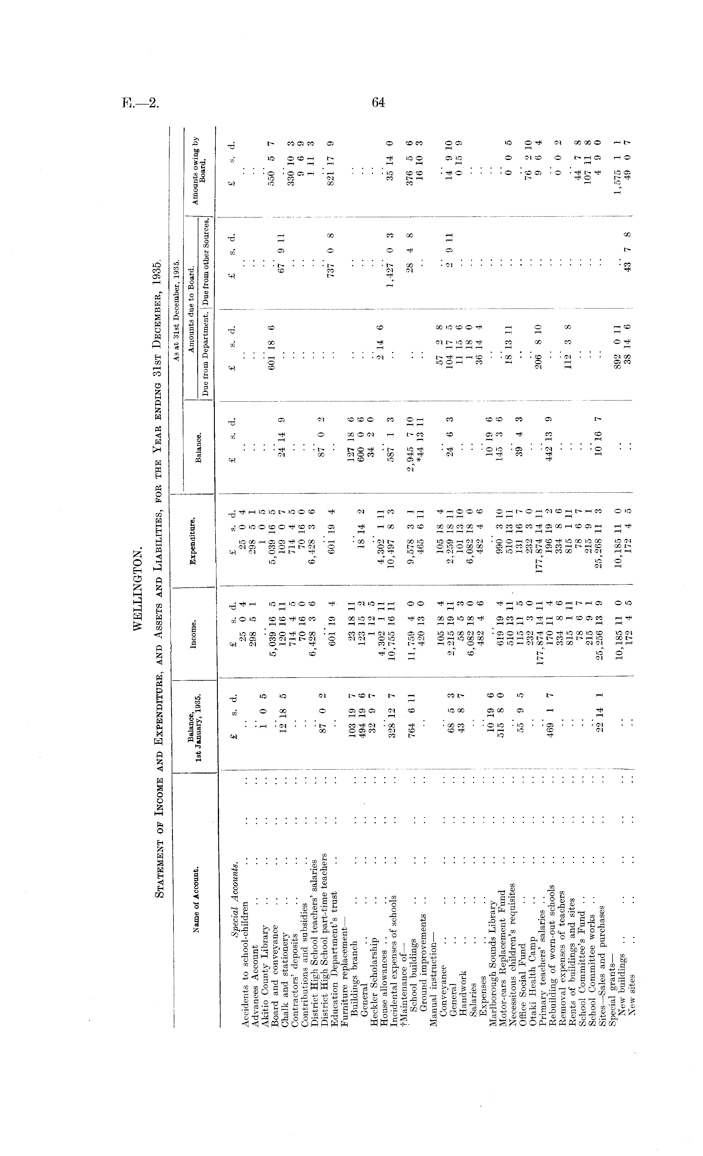 WELLINGTON. Statement of Income and Expenditure, and Assets and Liabilities, for the Year ending 31st December, 1935.