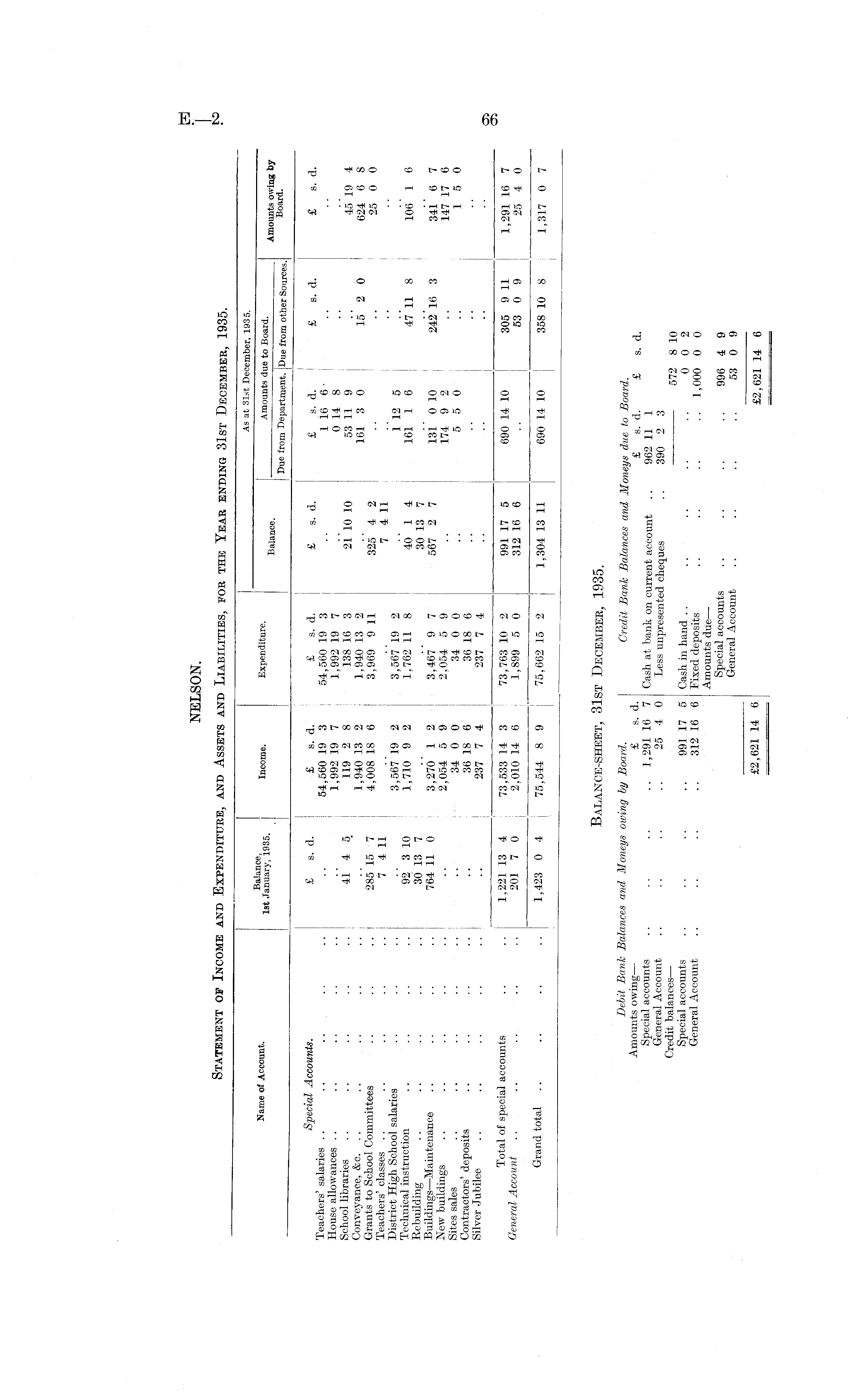NELSON. Statement of Income and Expenditure, and Assets and Liabilities, for the Year ending 31st December, 1935.