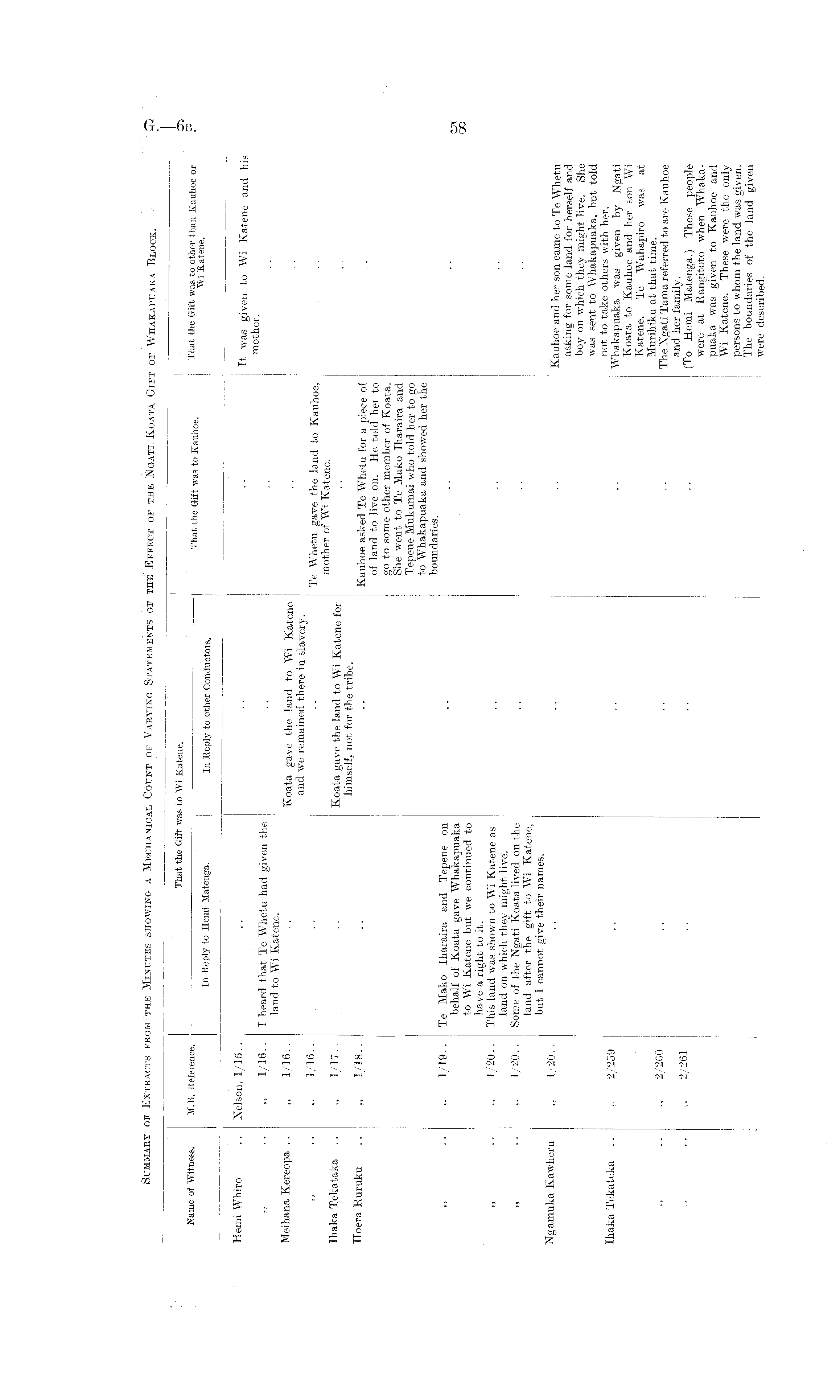 Summary of Extracts from the Minutes showing a Mechanical Count of Varying Statements of the Effect of the Ngati Koata Gift of Whakapuaka Block.