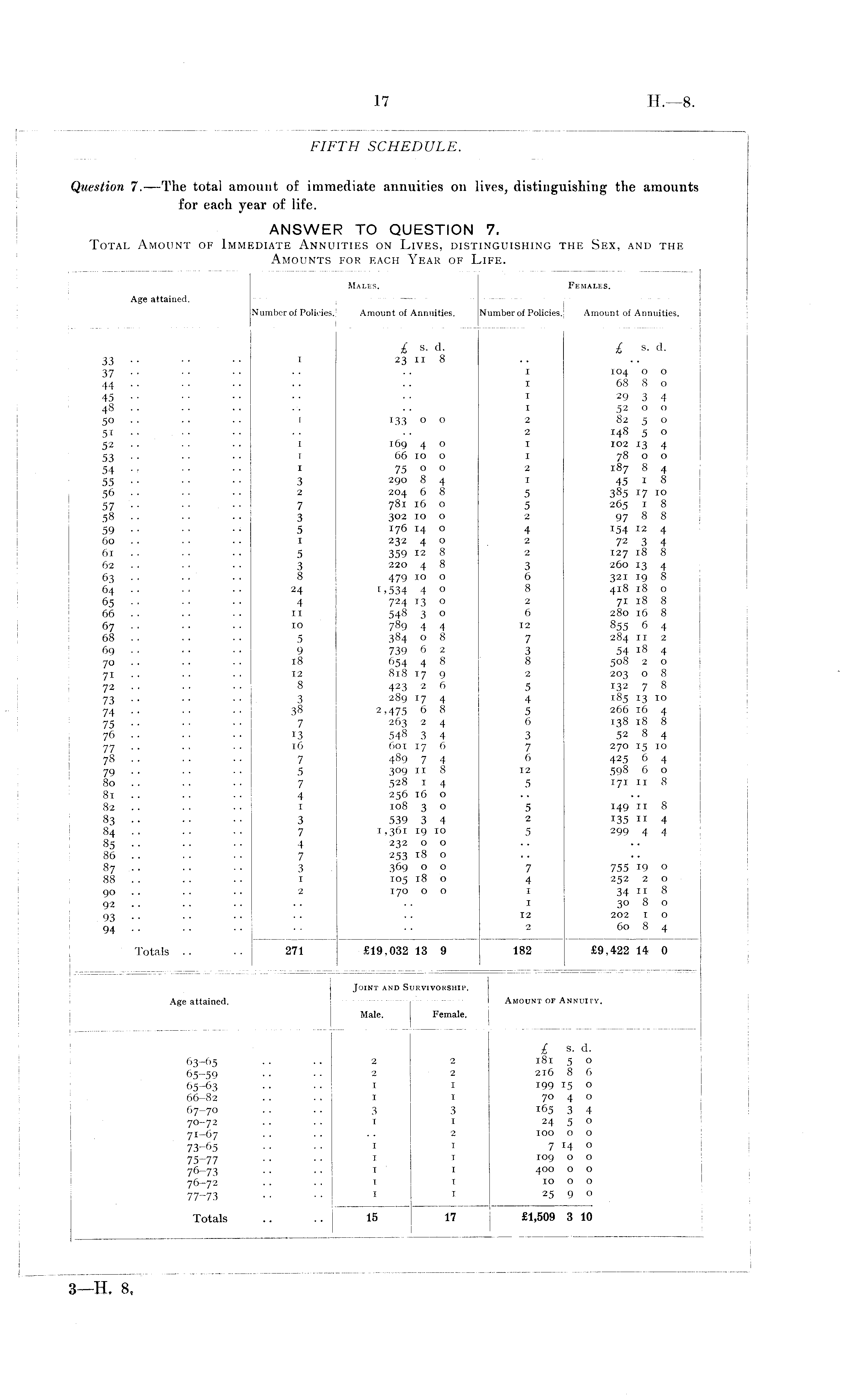FIFTH SCHEDULE. - Question 7. —The total amount of immediate annuities on lives, distinguishing the amounts for each year of life.