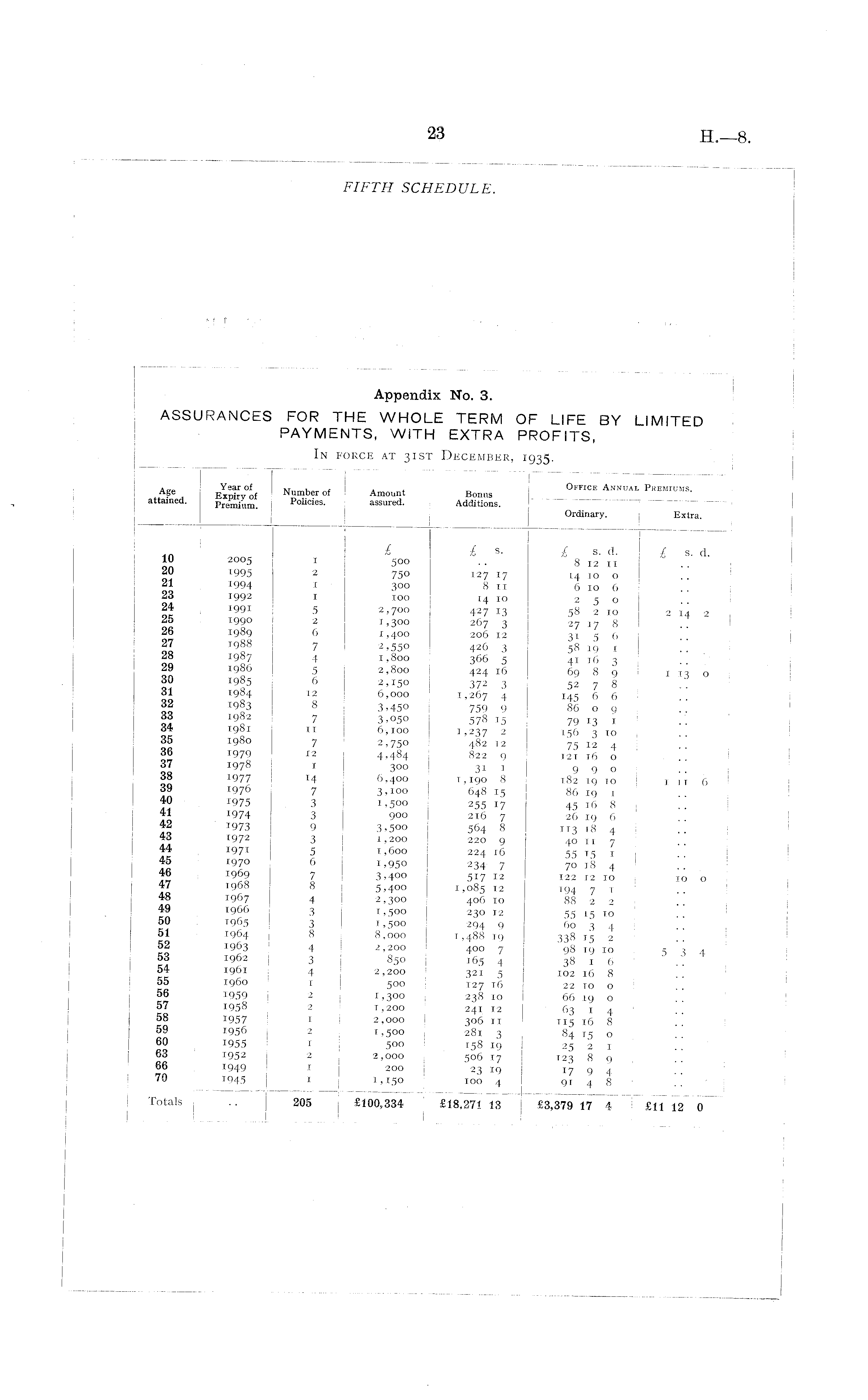 Appendix No. 3. ASSURANCES FOR THE WHOLE TERM OF LIFE BY LIMITED PAYMENTS, WITH EXTRA PROFITS, In force at 31st December, 1935.