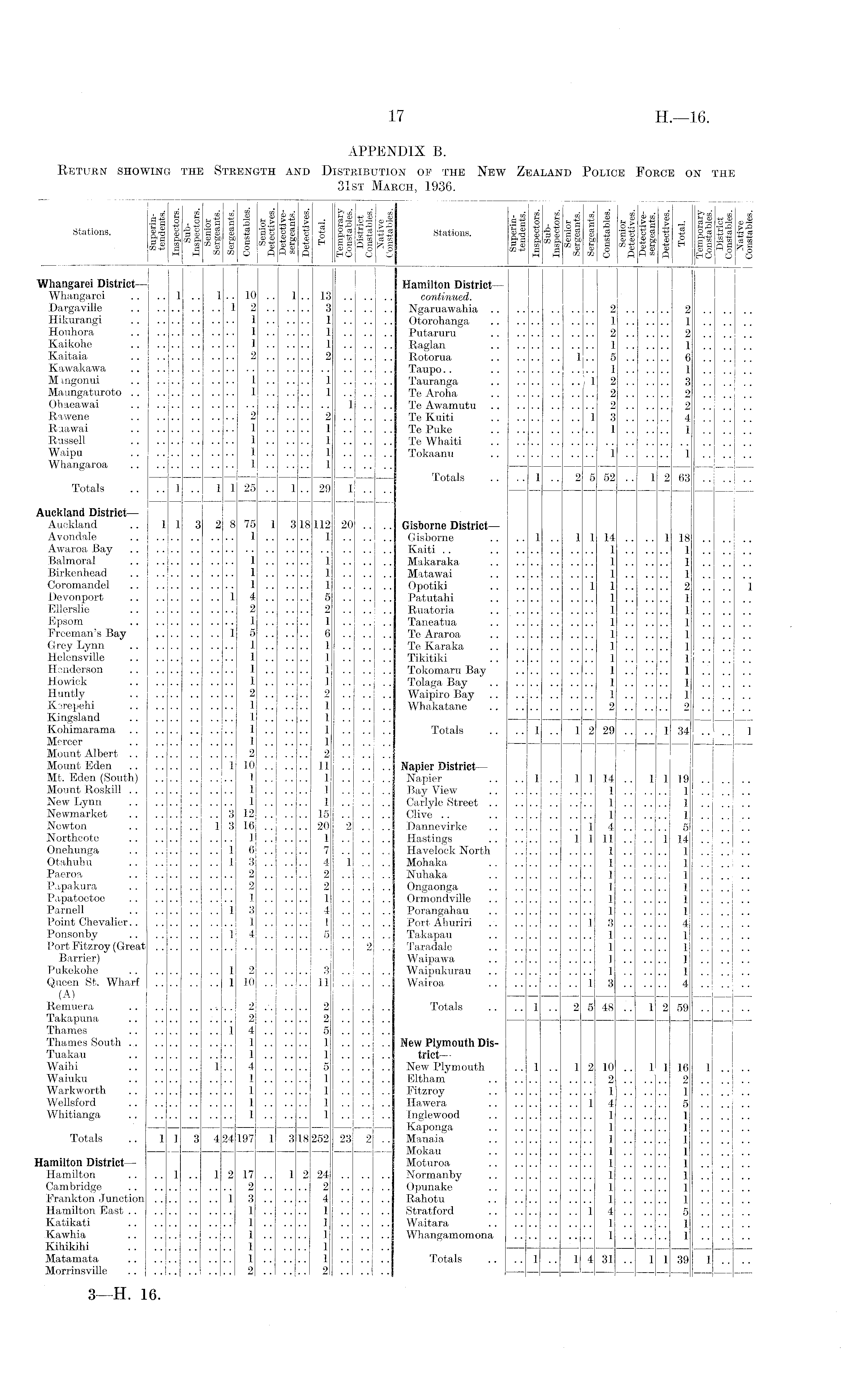APPENDIX B. Return showing the Strength and Distribution of the New Zealand Police Force on the 31st March, 1936.