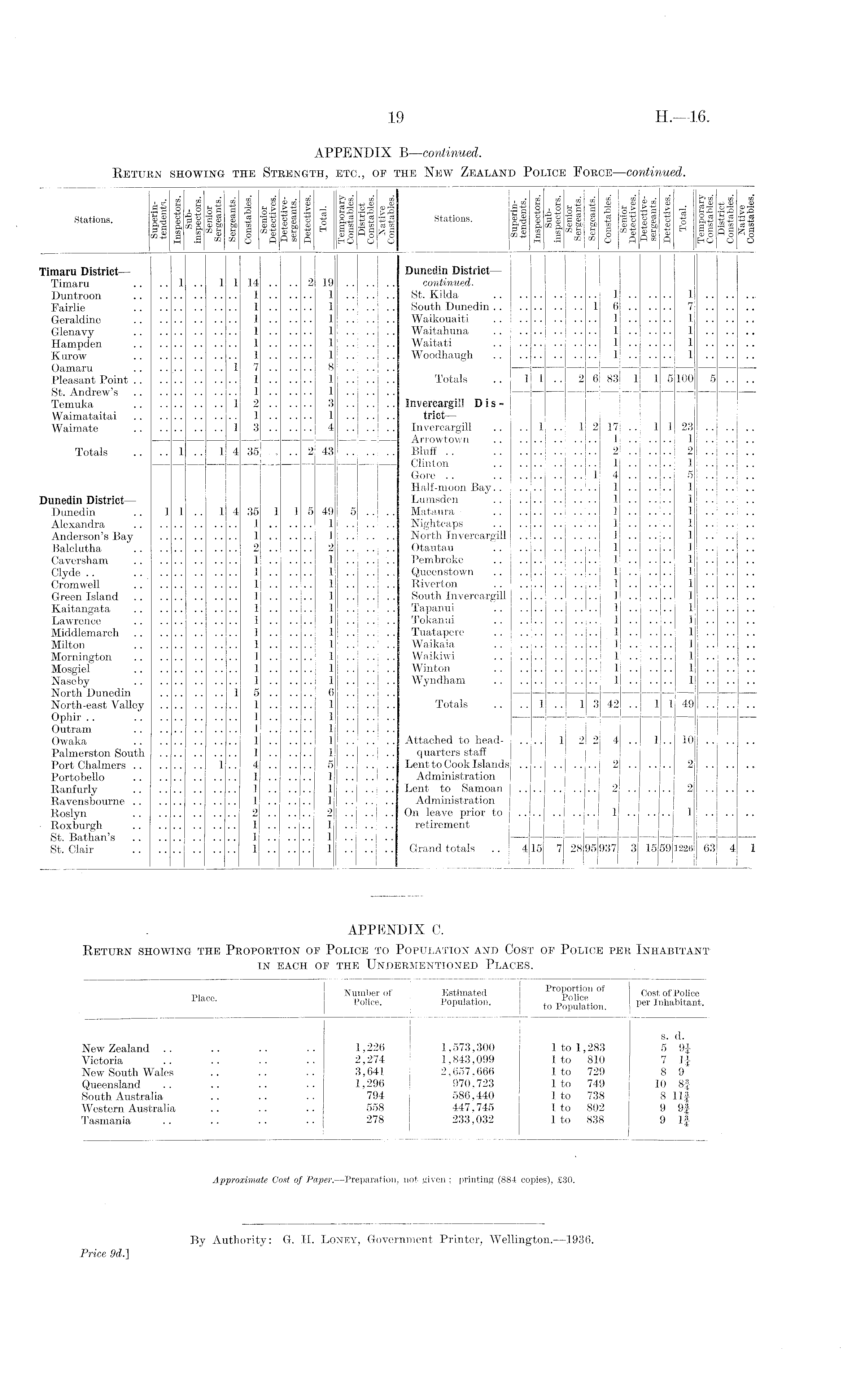 APPENDIX B —continued. Return showing the Strength, etc., of the New Zealand Police Force—continued.